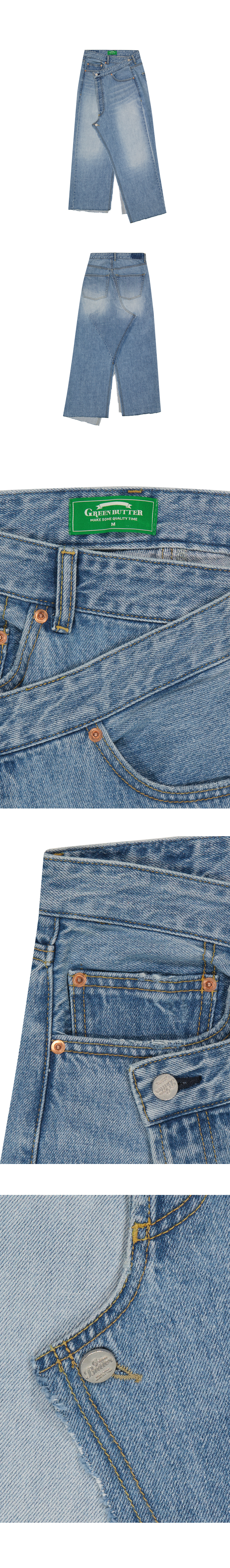 그린 버터 우먼 리빌드 언발란스드 랩 데님 스커트 블루