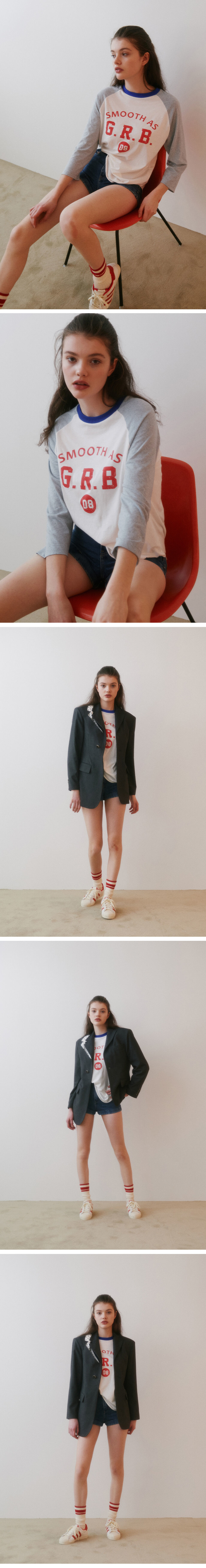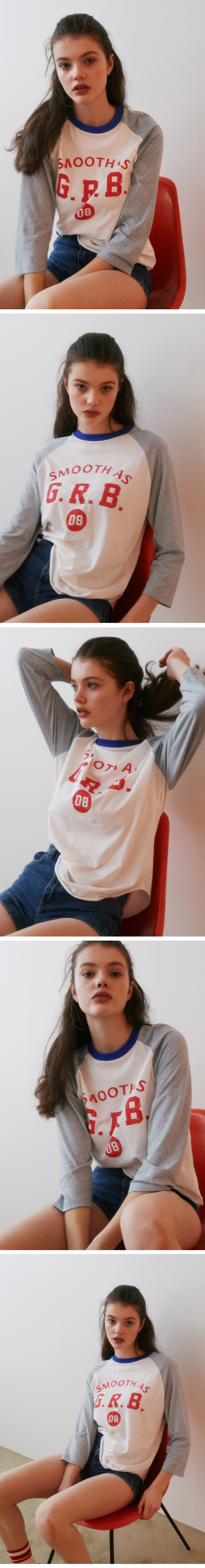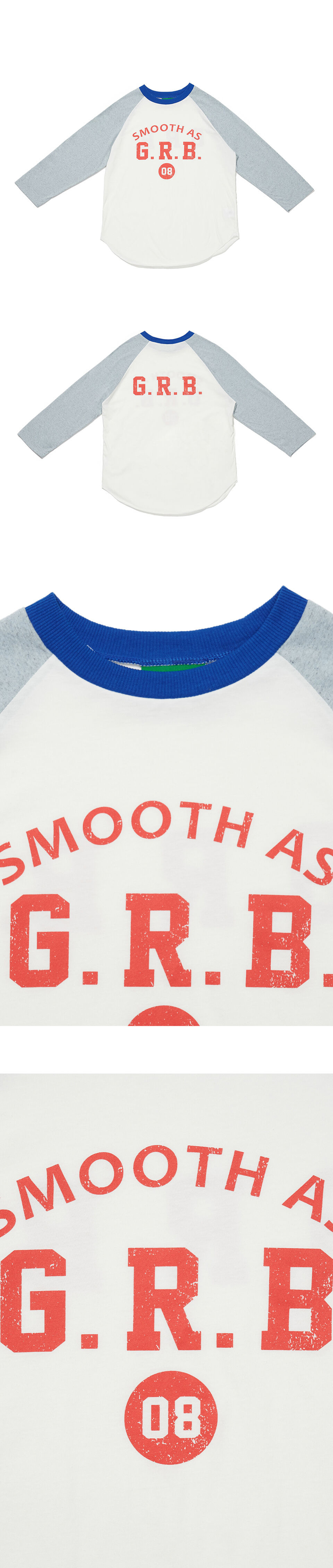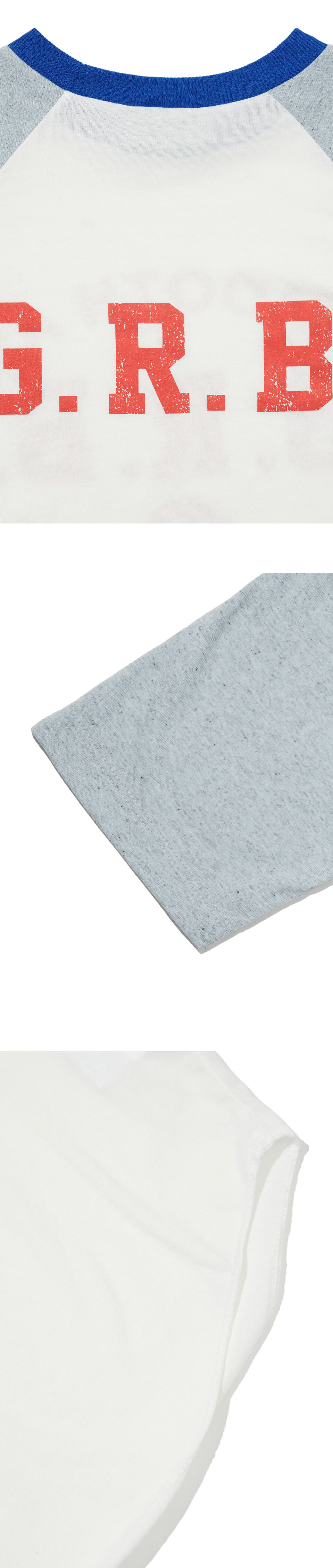 그린버터의 텍스트프린트가 돋보이는 7부기장의 래글런티셔츠입니다. 덤블워싱, 텐타가공을 통해 수축률을 최소화하였고, 소매는 입자감이 돋보이는 원단을 사용한 제품입니다.