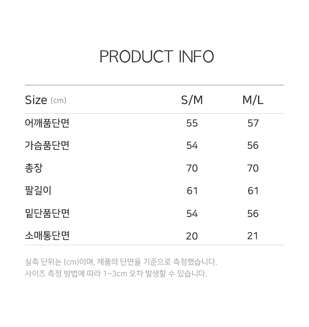 측정 방법에 따라 사이즈에 일부 오차가 있을 수 있습니다.