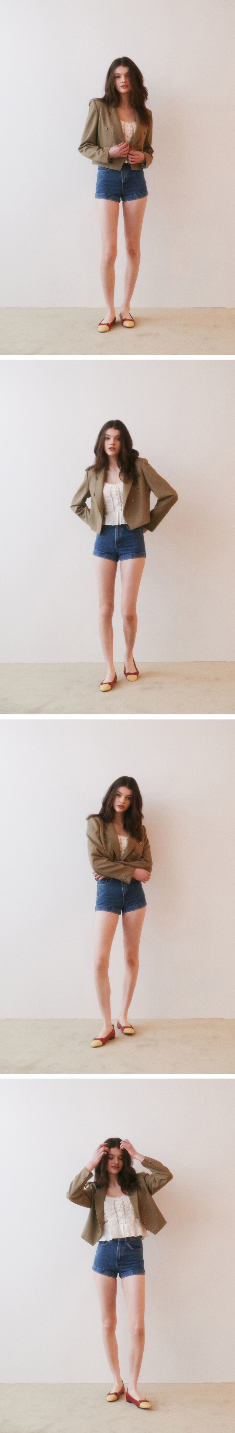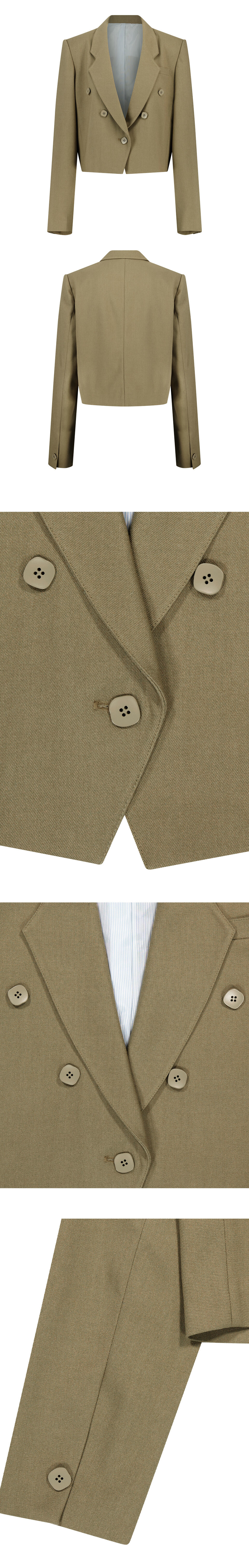 그린 버터 우먼 브이슬릿 스퀘어 버튼 크롭 자켓 베이지