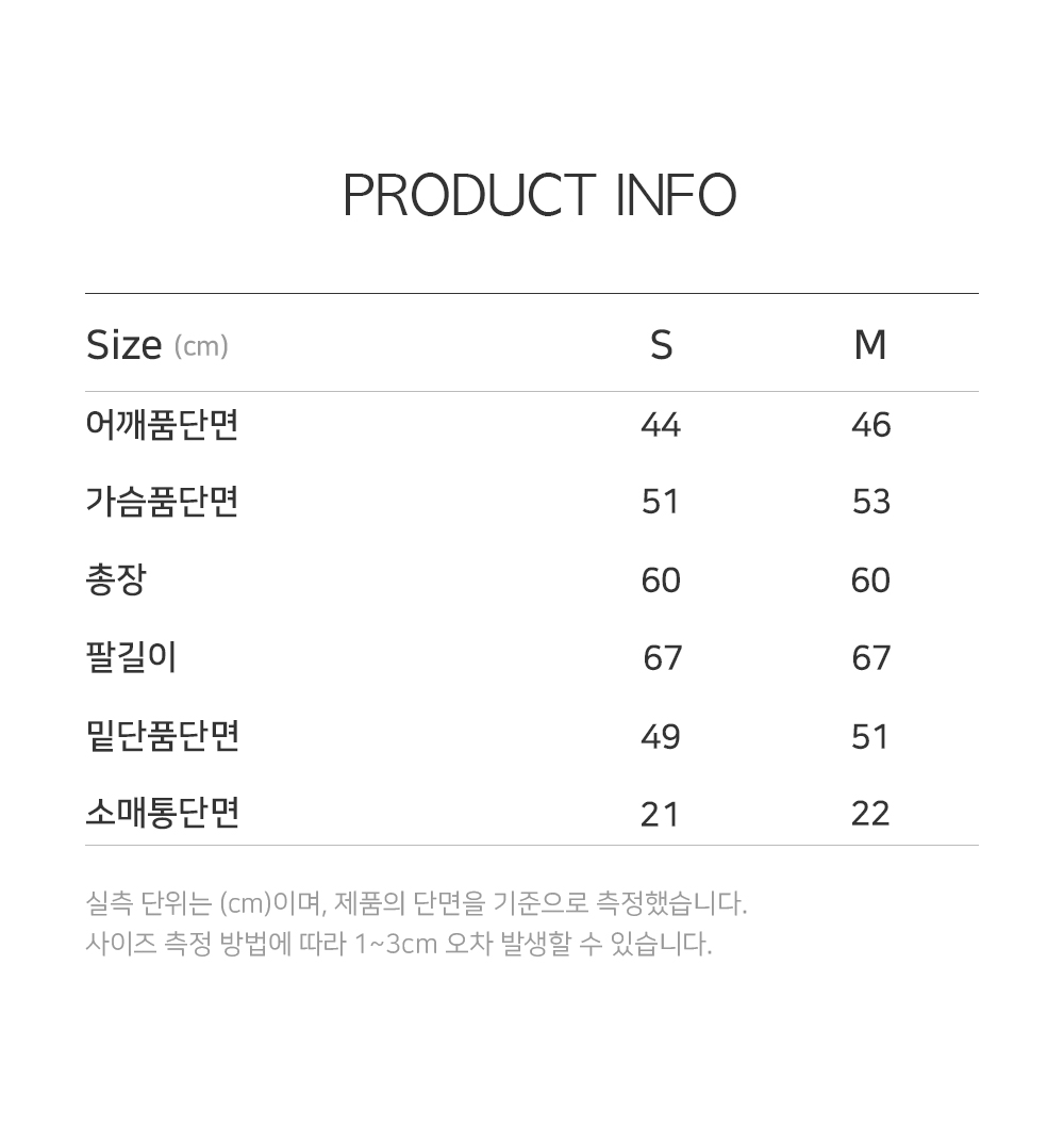 측정 방법에 따라 사이즈에 일부 오차가 있을 수 있습니다.