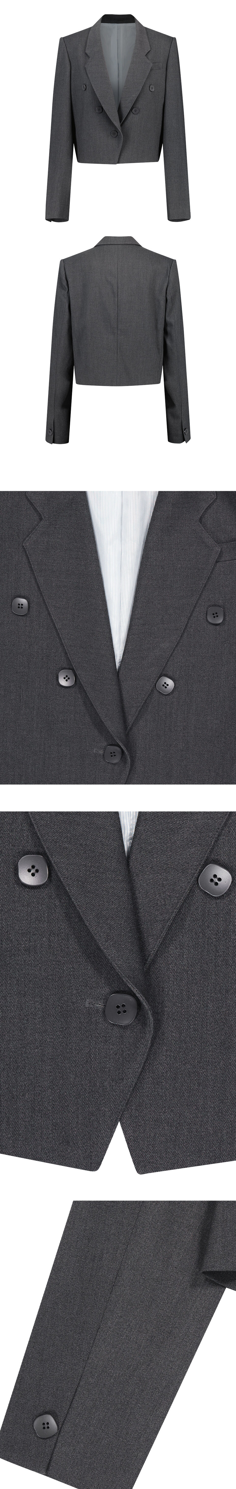 그린 버터 우먼 브이슬릿 스퀘어 버튼 크롭 자켓 그레이