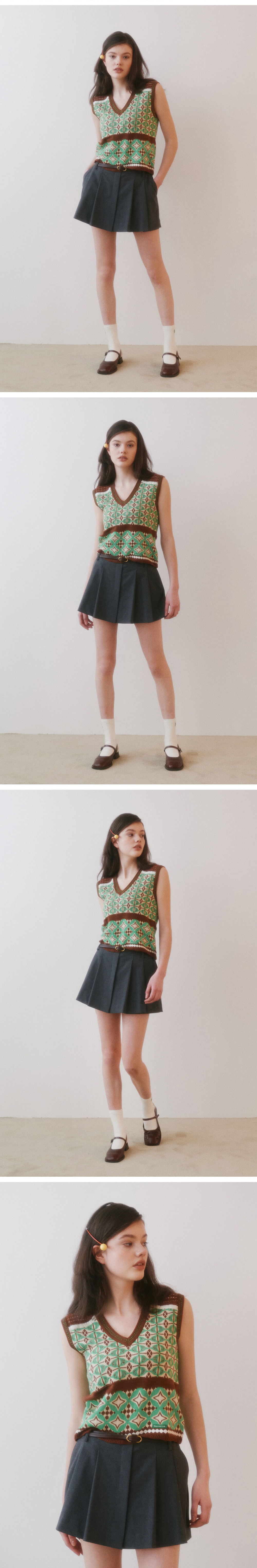 그린 버터 우먼 핀턱 플리츠 스커트 팬츠 벨트 세트 차콜