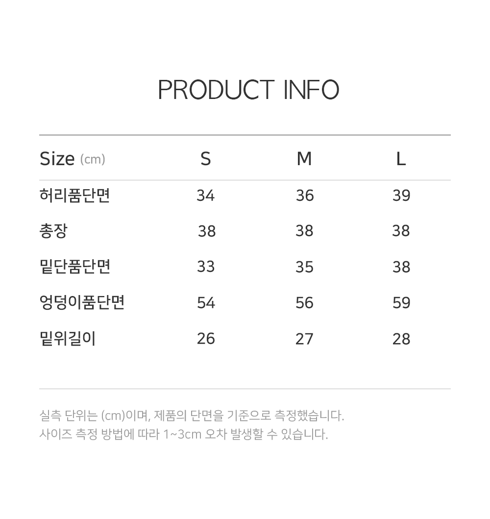 | 허리품단면 | 총장 | 밑단품단면 | 엉덩이품단면 | 밑위길이 |
