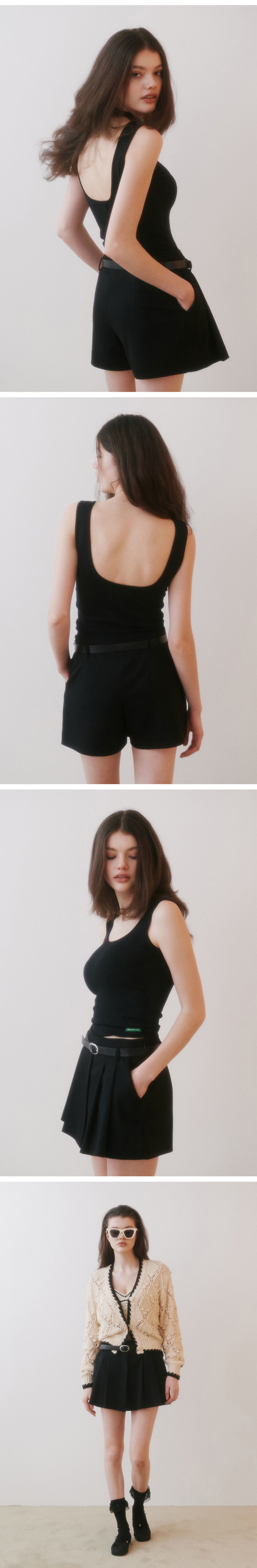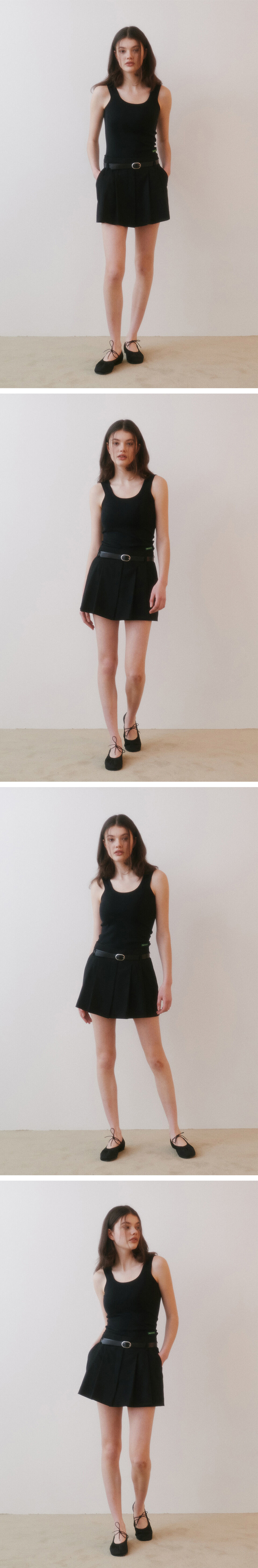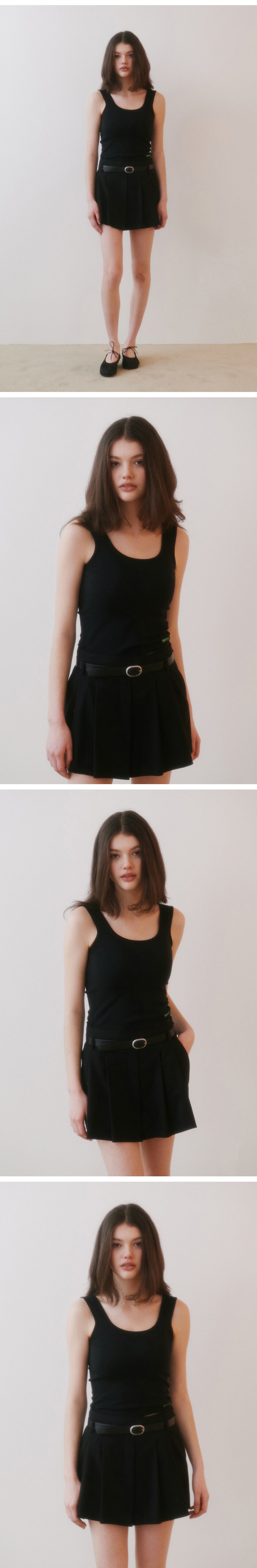 그린 버터 우먼 핀턱 플리츠 스커트 팬츠 벨트 세트 블랙