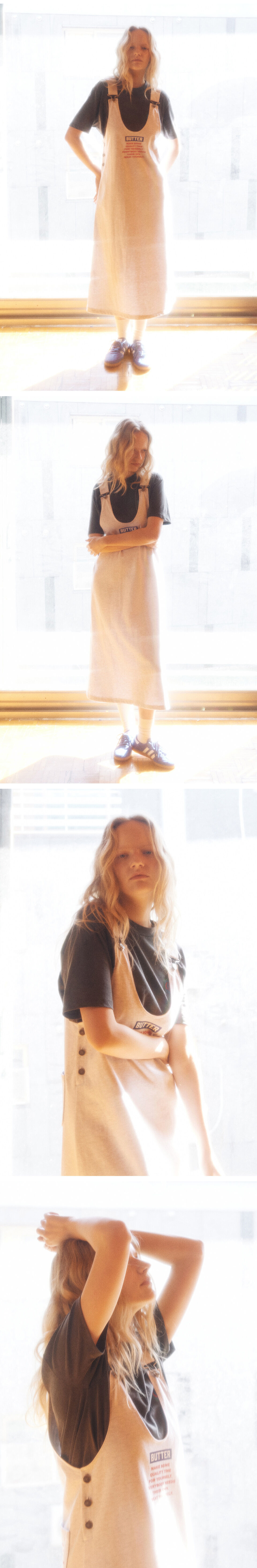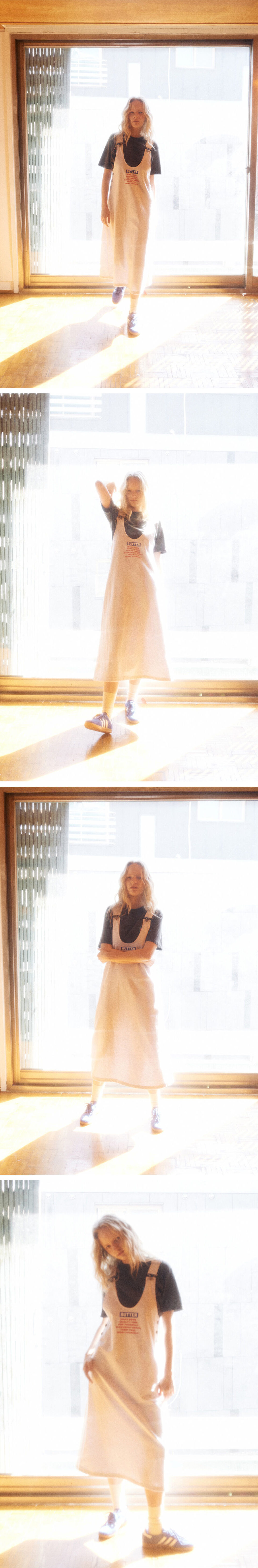 덤블워싱, 텐타가공을 통해 수축률을 최소화한 멜빵원피스입니다. 긴 기장감의 원피스로 깊은 넥라인이 특징인 제품입니다. 탄탄한 두께감의 원단을 사용해 비침이 적으며 여유있는 품으로 활동이 편하고 ,어깨의 끈길이가 조절가능한 멜빵원피스입니다.