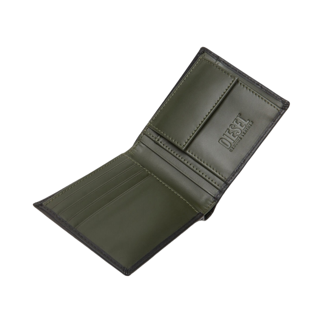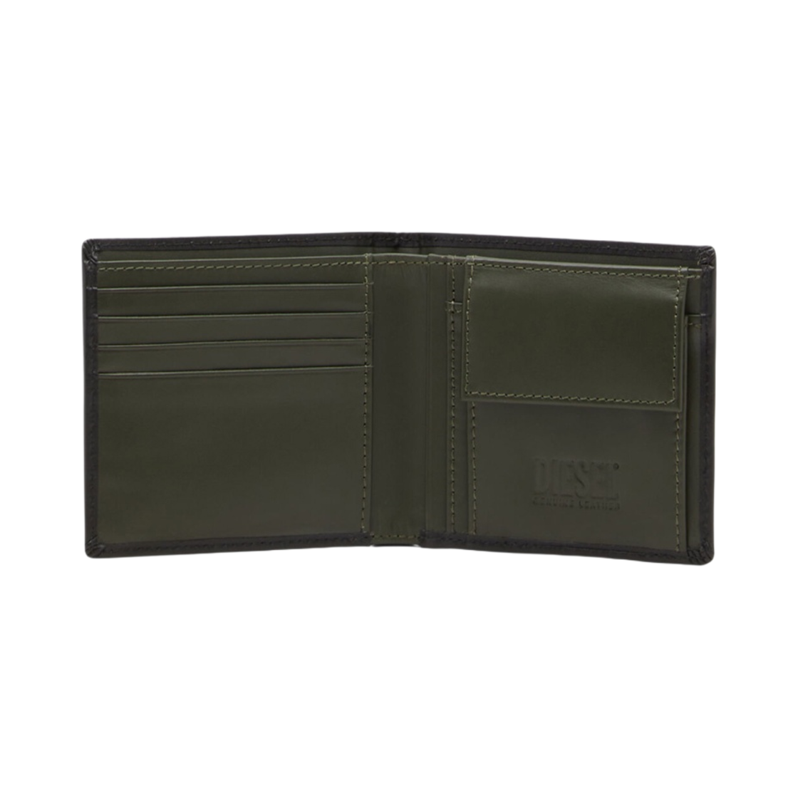 디젤 디보스드 로고 하이레쉬 S.Ii 레더 바이폴드 월렛 블랙 그린
