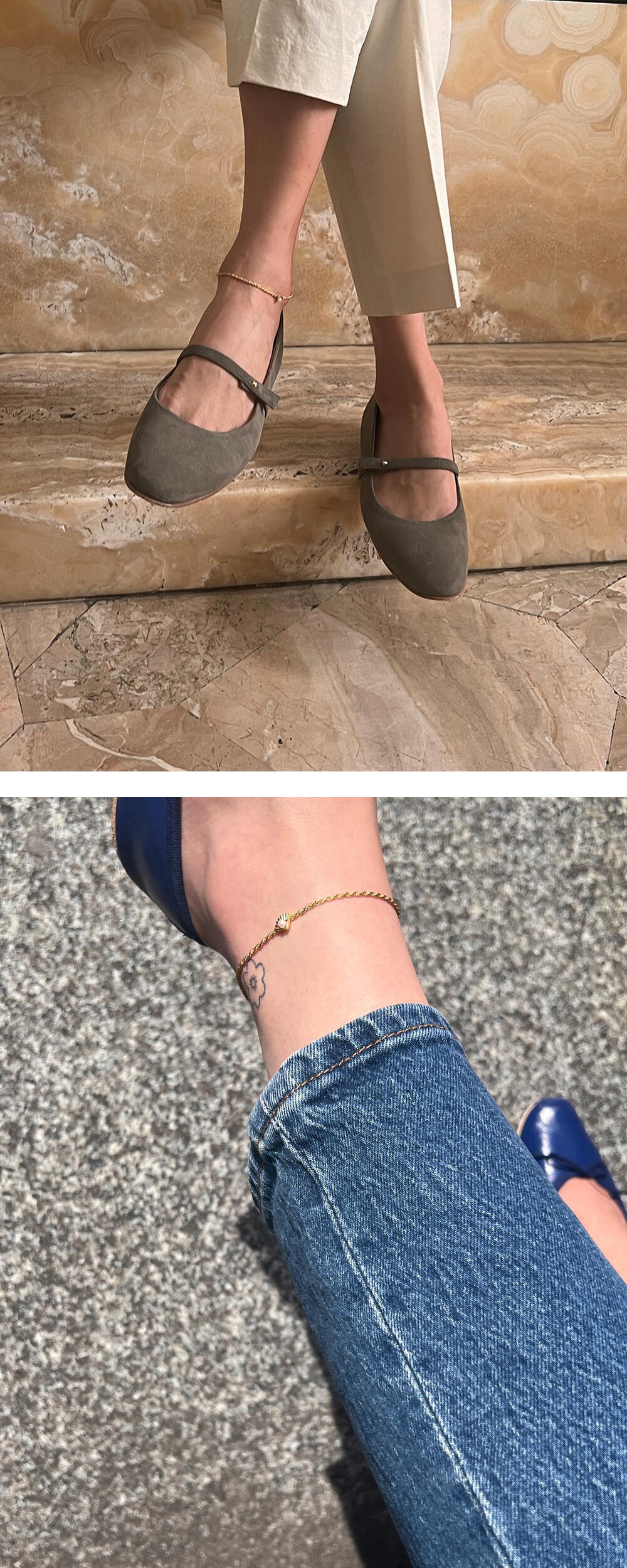 1920's 아르데코 양식의 모티브를 바탕으로 이탈리아의 Nechhi Campiglio 드레스 룸에서 영감을 받아 제작된 이번 앵클렛은 클래식 하면서도 페미닌한 느낌입니다. 앵클렛의 특성상 섬세하고 튼튼한 체인으로 제작되어 안정감이 느껴집니다. 마망에필레는 오더메이드 방식으로 주문 후 교환 및 환불이 불가합니다. 제작 기간은 주말과 공휴일을 제외하고 10-14일 소요됩니다. 샘플과 최대한 같은 형태로 제작하고 있으나 핸드메이드 특성상 근소한 차이가 있을 수 있습니다. 기타 문의사항은 CS 010 8468 3791 또는 카카오톡 mamanetfille으로 연락 주시기 바랍니다. 빠른 기간 내에 받아 보셔야 하는 경우에는 CS 010 8468 3791로 문의하시기 바랍니다.