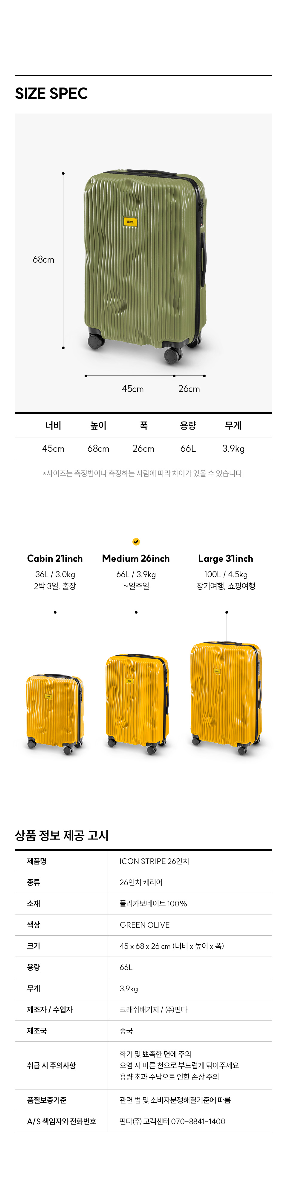 크래쉬배기지 아이콘 스트라이프 26인치 올리브