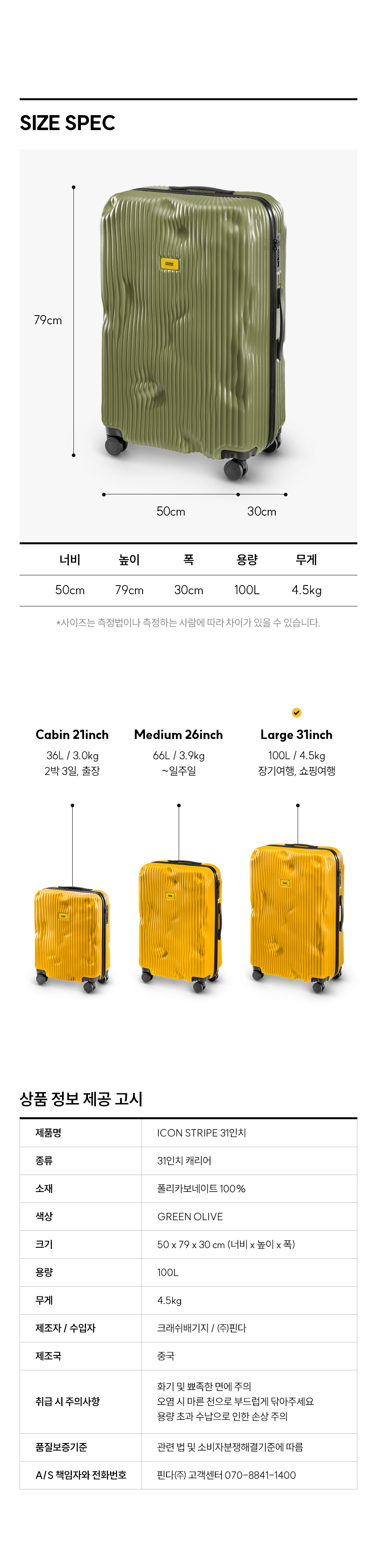 크래쉬배기지 아이콘 스트라이프 31인치 올리브