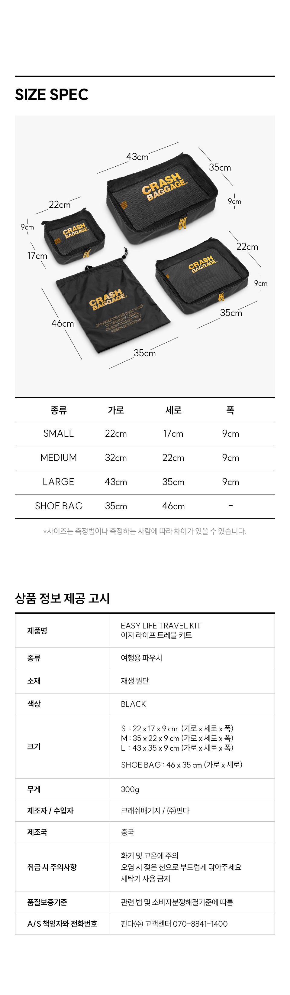 크래쉬배기지 이지 라이프 트래블 키트 파우치 블랙