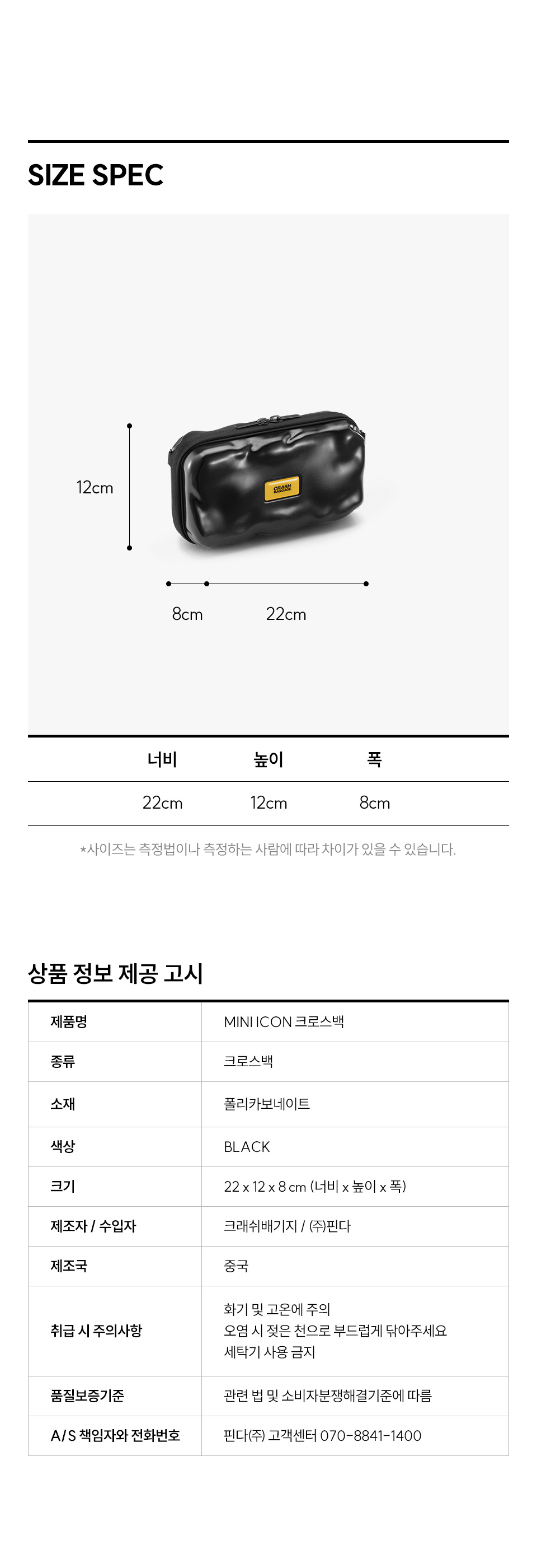 측정 방법에 따라 사이즈에 일부 오차가 있을 수 있습니다.