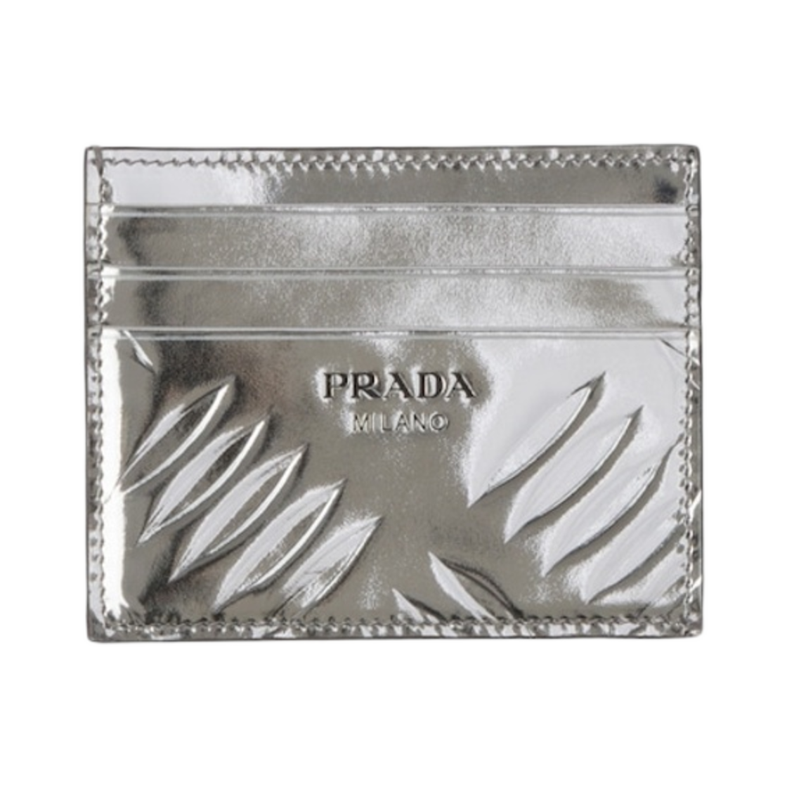 Prada Brushed Leather Credit Card Holder Silver