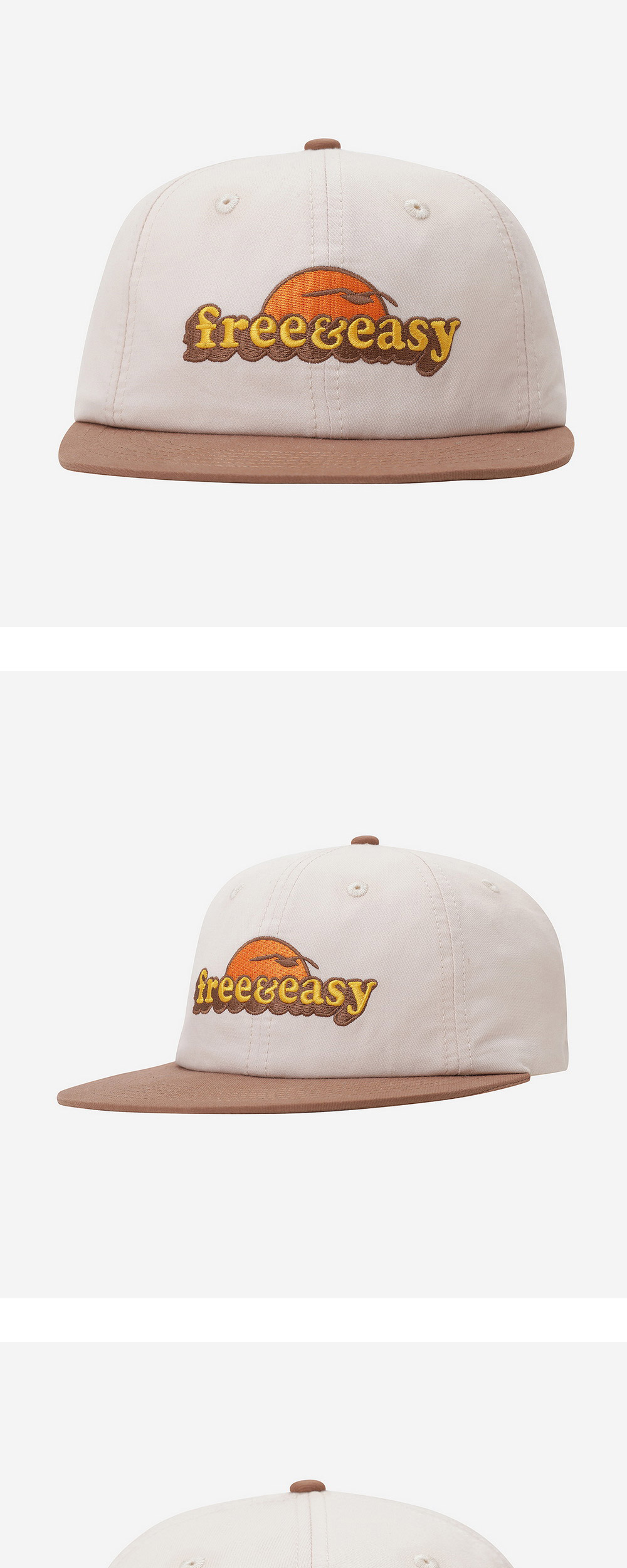 프리앤이지 (Free & Easy)는 LA에서 시작된 브랜드로 위트있는 'Don't Trip(넘어지지 마)' 문구 아래 캘리포니아의 자유로운 분위기를 담아냅니다. Floppy, lightweight and perfect for hot summer days! Color Bone/Brown Features • 6 panel • 100% cotton • Lightweight fabric • Unstructured • Strapback • Brass closure • Curvable flat brim • Floppy crown • Custom embroidery