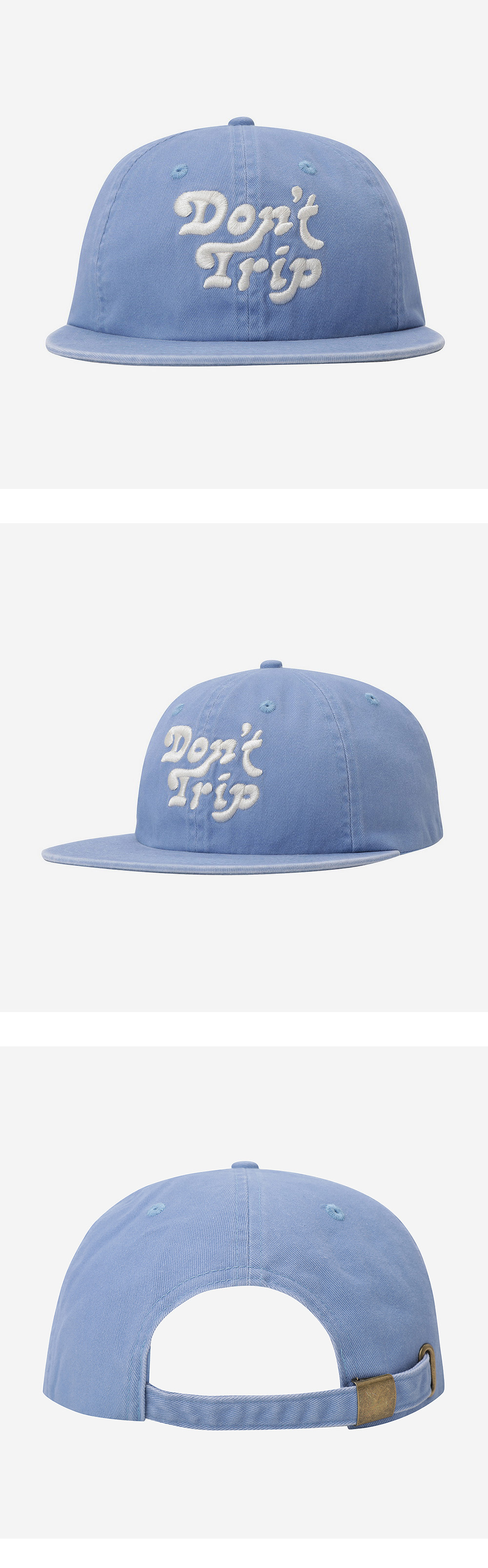 프리앤이지 (Free & Easy)는 LA에서 시작된 브랜드로 위트있는 'Don't Trip(넘어지지 마)' 문구 아래 캘리포니아의 자유로운 분위기를 담아냅니다. Color Light Blue Features • 6 panel • 100% cotton twill • Vintage washed • Unstructured • Strapback • Brass closure • Curvable Flat brim • Floppy crown • Custom embroidery