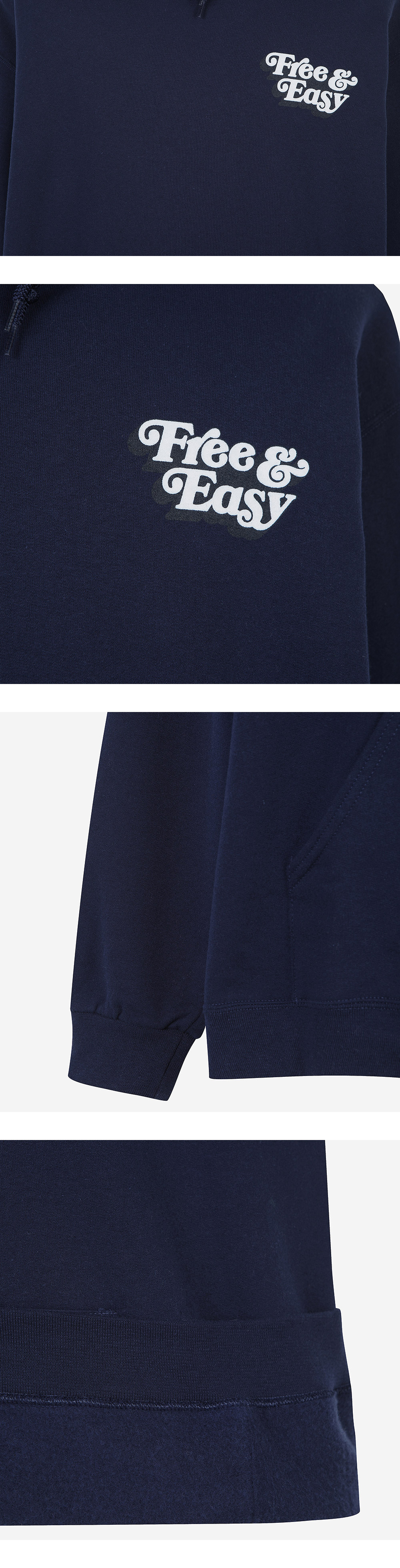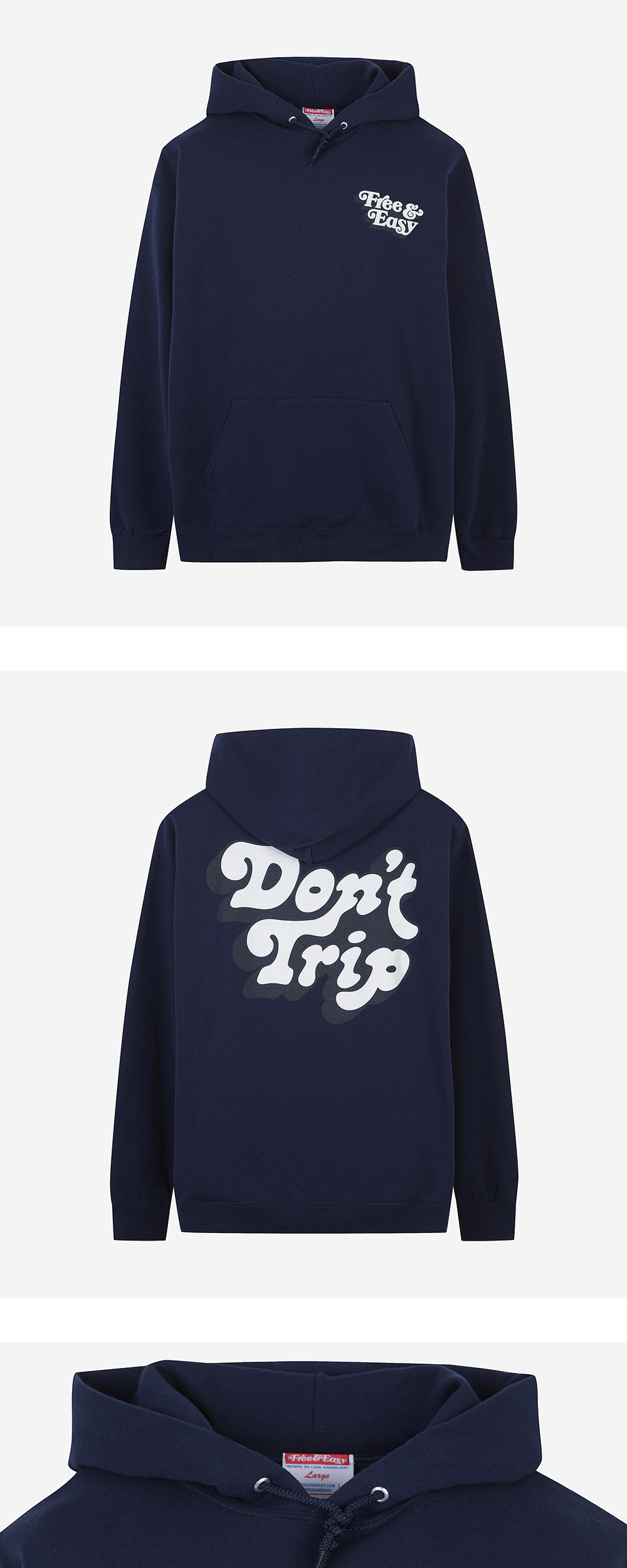 프리앤이지 (Free & Easy)는 LA에서 시작된 브랜드로 위트있는 'Don't Trip(넘어지지 마)' 문구 아래 캘리포니아의 자유로운 분위기를 담아냅니다. Pullover mid-weight hoodie. Classic P.E. style with a slightly cropped/vintage hoodie fit. Want a little more room? Size up. Want that OG feel? Get your normal size. Stay comfy! Color Navy Features • 50% cotton / 50% polyester • Kangaroo pocket • Matching drawstrings • Double needle construction • Vintage washed • Pre-shrunk • Hand-printed in Los Angeles • True to size
