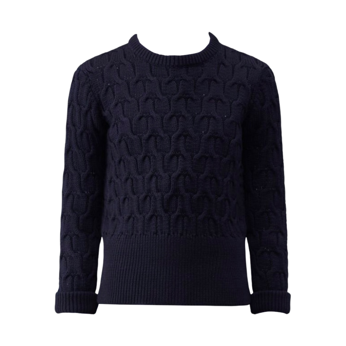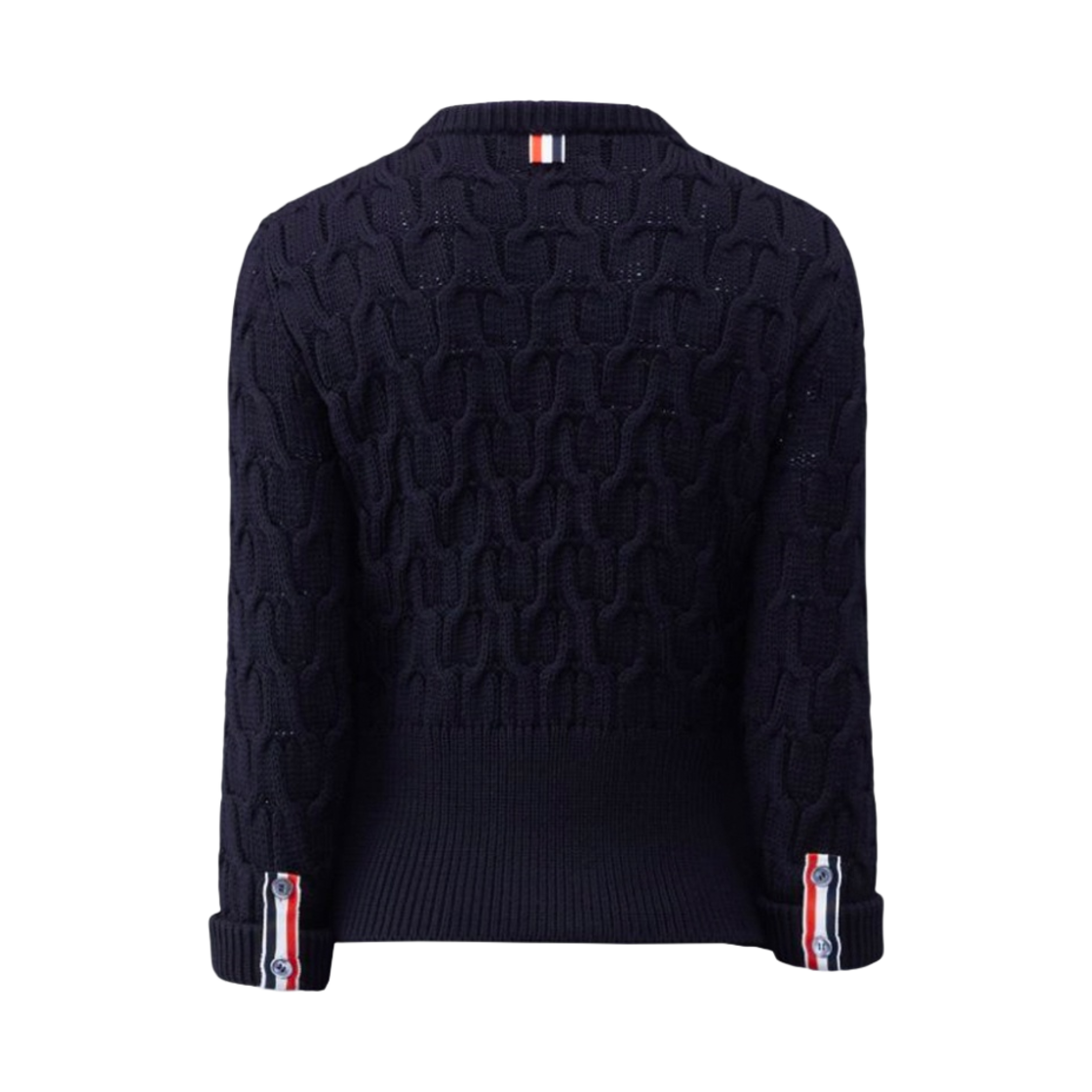 (W) Thom Browne Merino Crisscross Cable Stitch Crewneck Pullover Navy