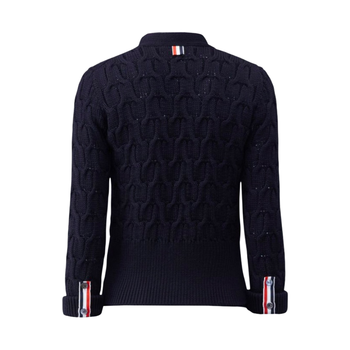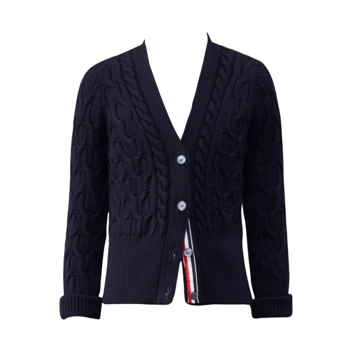 (W) 톰브라운 메리노 크리스크로스 케이블 롤 3/4 슬리브 브이넥 가디건 네이비