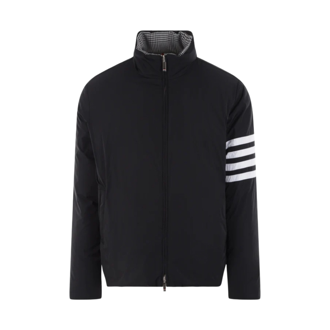 Thom Browne Heavy Wool Suiting 4-Bar Reversible Funnel Neck Zip-Up Jacket Black White