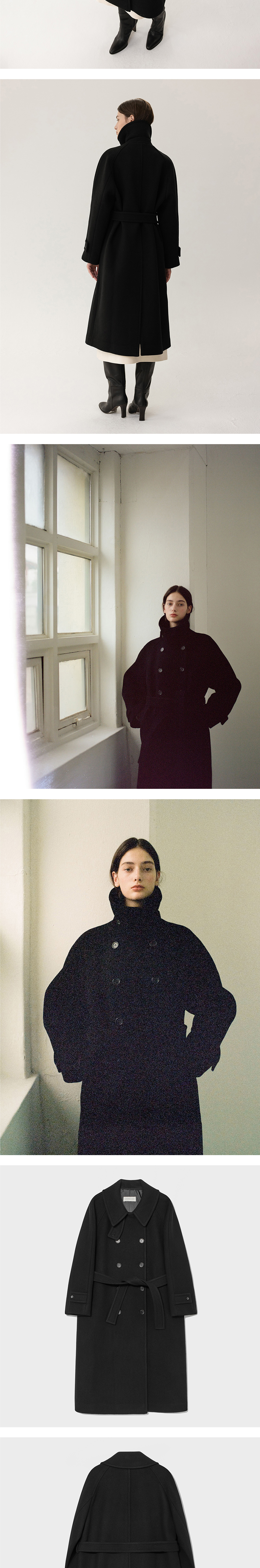 100% 울 소재를 사용하여 한겨울을 따뜻하게 내어줄 매니시한 느낌이 매력적인 맥시 롱 기장의 더블 코트입니다. 탈부착이 가능한 도톰한 비죠로 다양한 연출이 가능합니다.