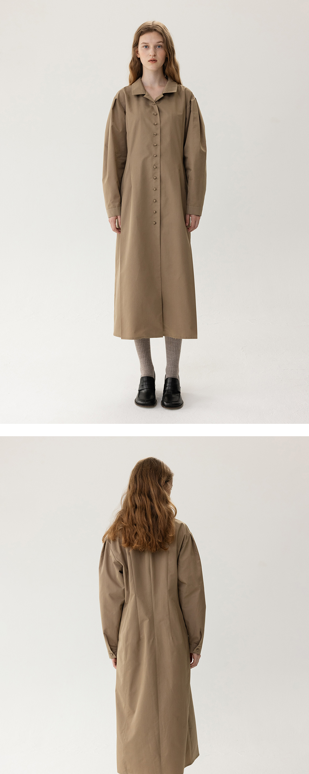 톤 다운된 브라운 컬러로 우아함을 선사하는 버튼 포인트의 카라 원피스입니다. 허리라인에 다트가 잡혀있어 보디 실루엣을 자연스럽게 잡아줍니다. 숄더 라인에 잡혀있는 턱은 곡선을 부드럽게 만들며 떨어져 우아함을 더해줍니다.