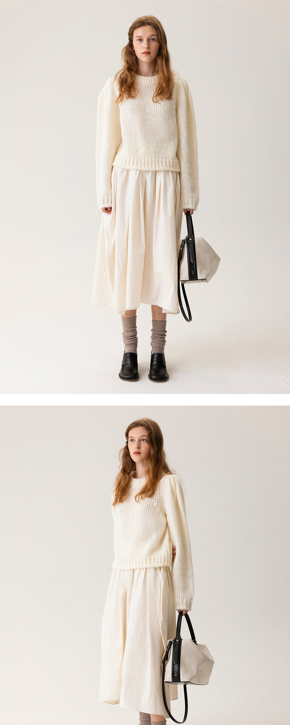 킨더살몬 우먼 퍼프 슬리브 롱 풀오버 바닐라 - FW23