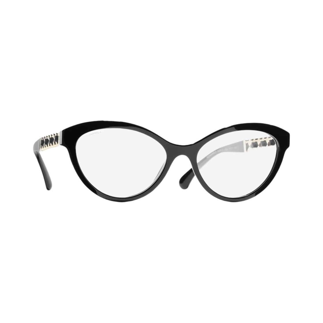 Chanel Cat Eye Blue Light Glasses Acetate Calfskin & Black Gold Transparent Lenses International Fit