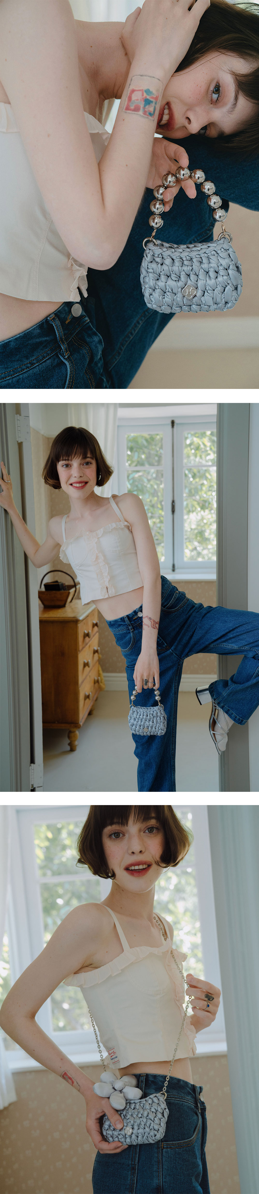 히어리 우먼 라브 사틴 니트 미니 백 실버