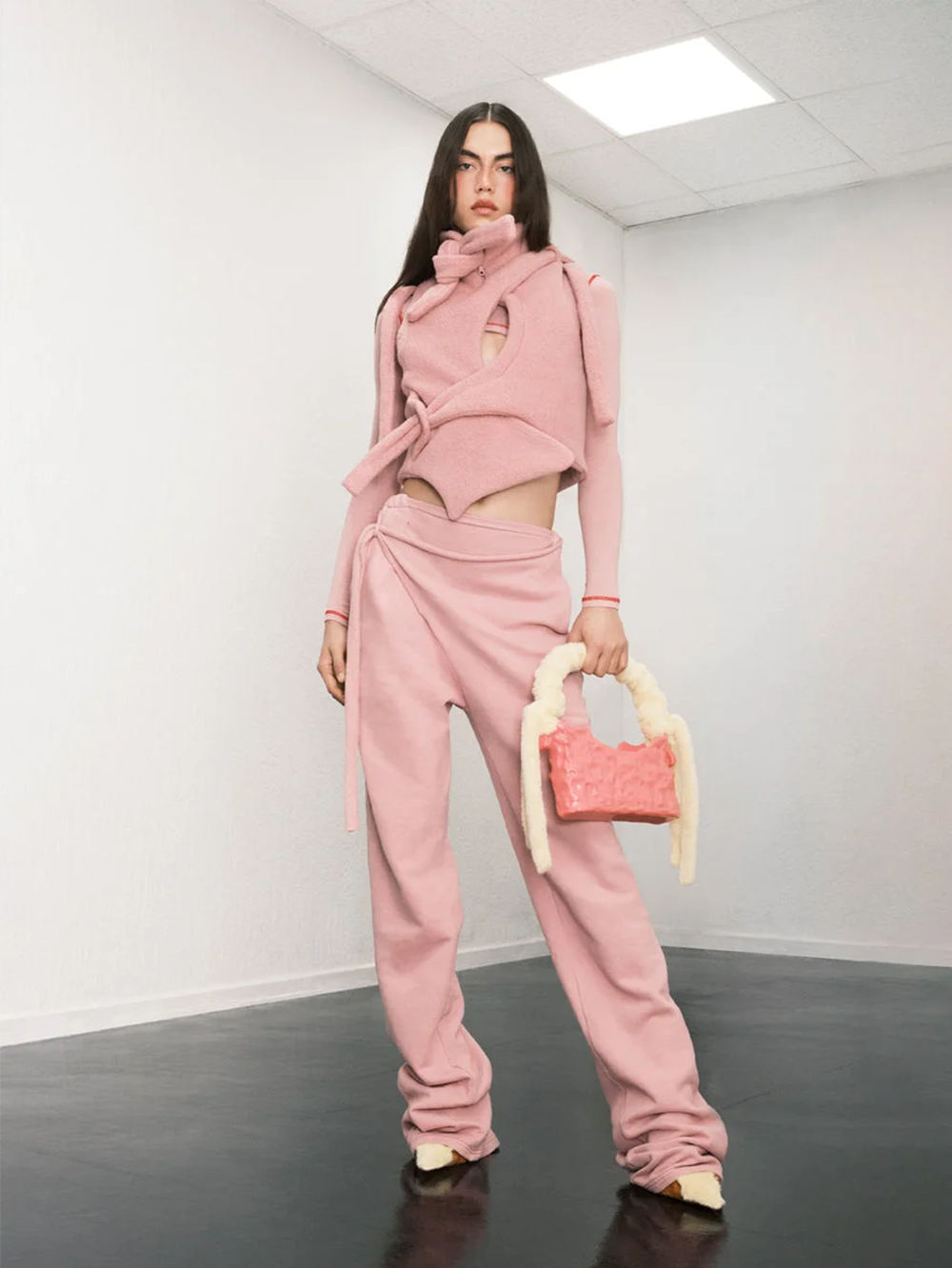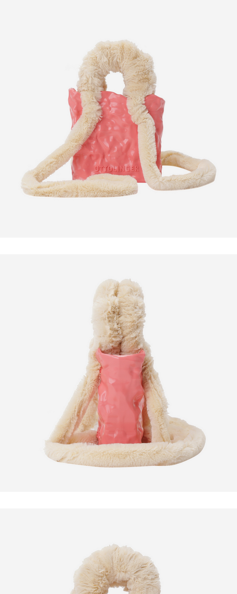 Signature ceramic-effect. Desert Flower body. Furry double handles with long furry shoulder straps. Tonal debossed logo. Dustbag and box included.
