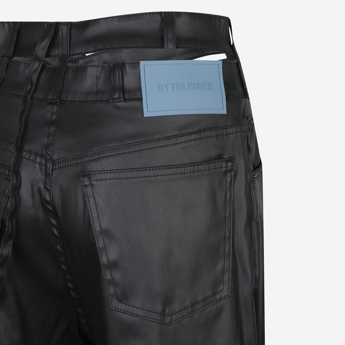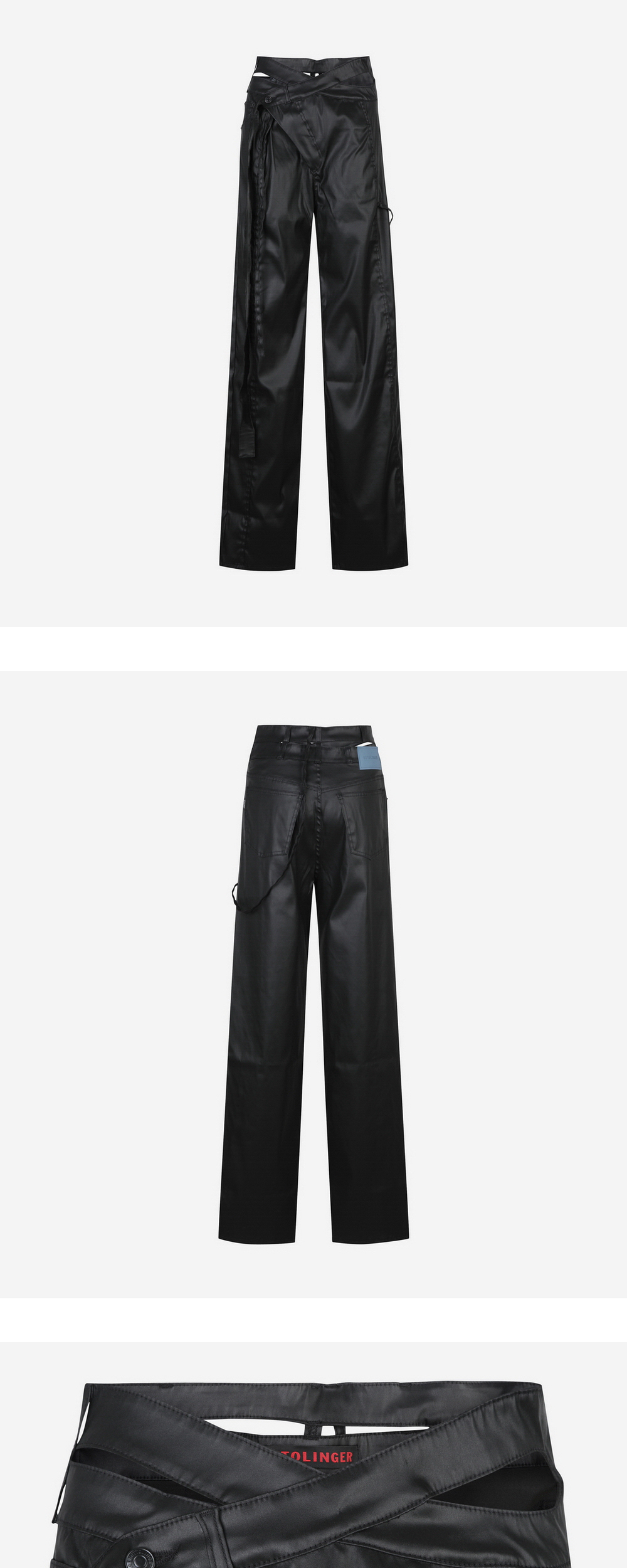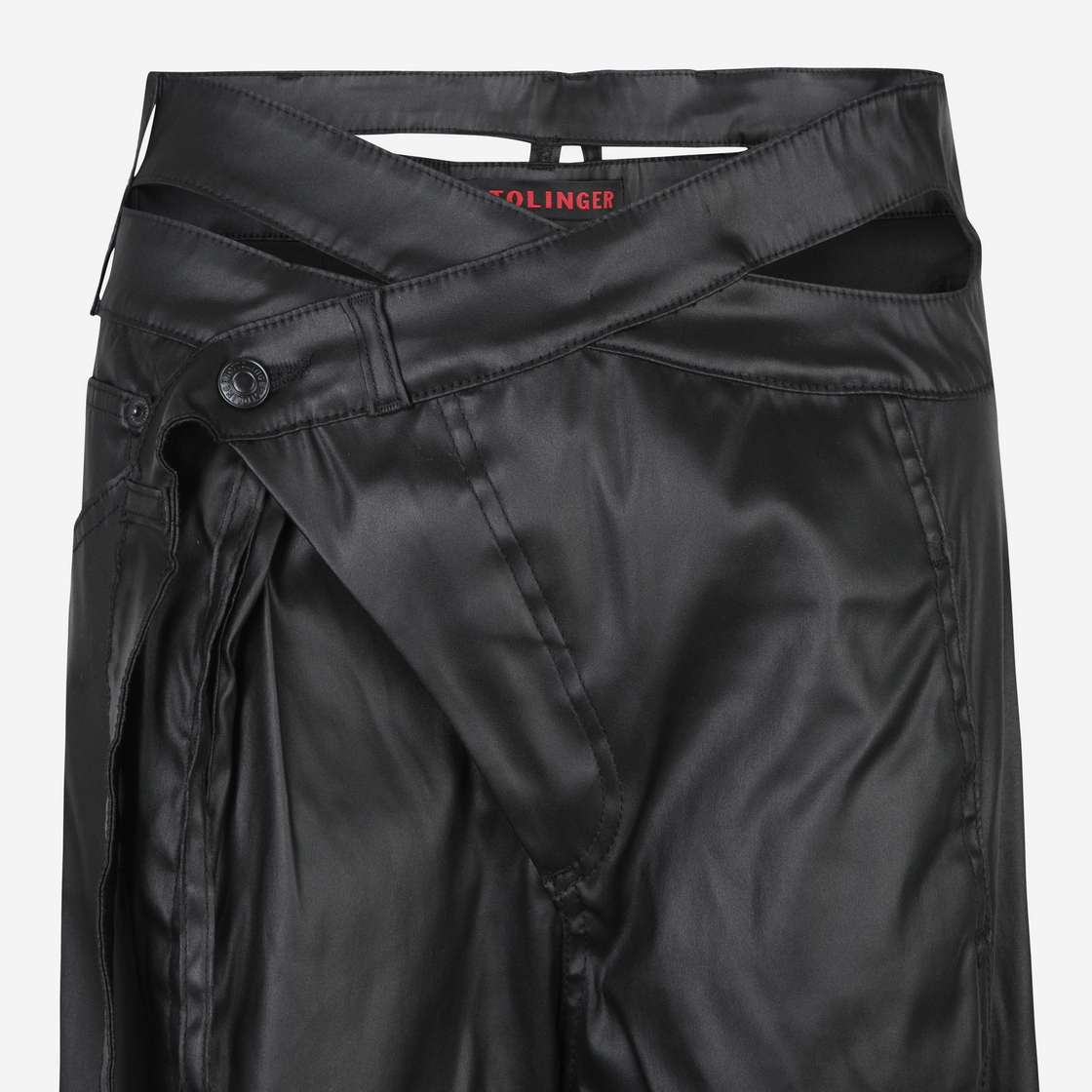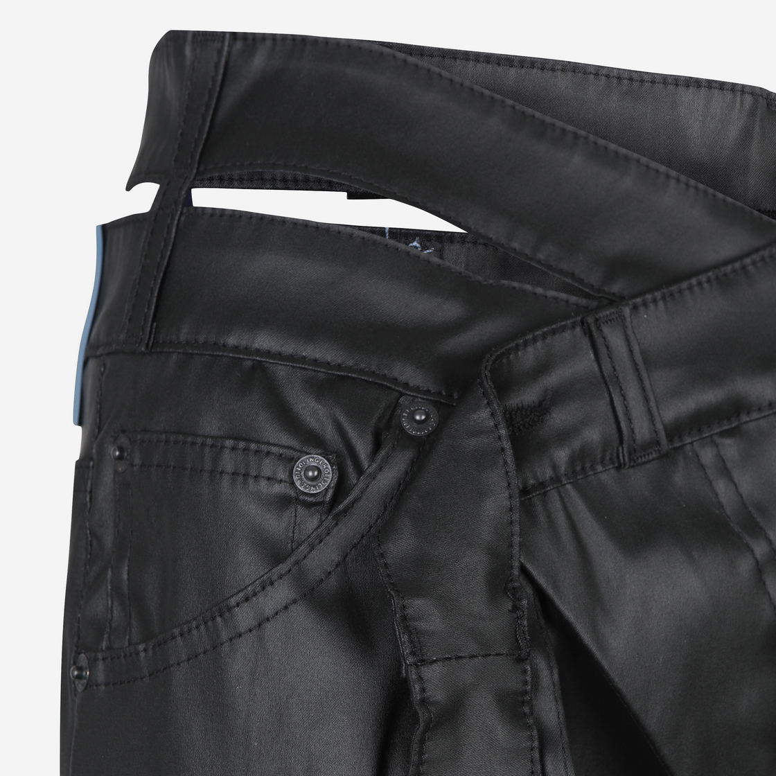 Wrap Jeans in Black Signature style. Twisted body. Cutout at hip. Exaggerated belt. Button-closure. Black rubber logo patch. Wide cut. Extra-long leg. Handwash cold. 35% Recycled Polyester 25% Cotton 19% PRE 19% POS 2% Elastane Designed in Berlin. Made in Türkiye.