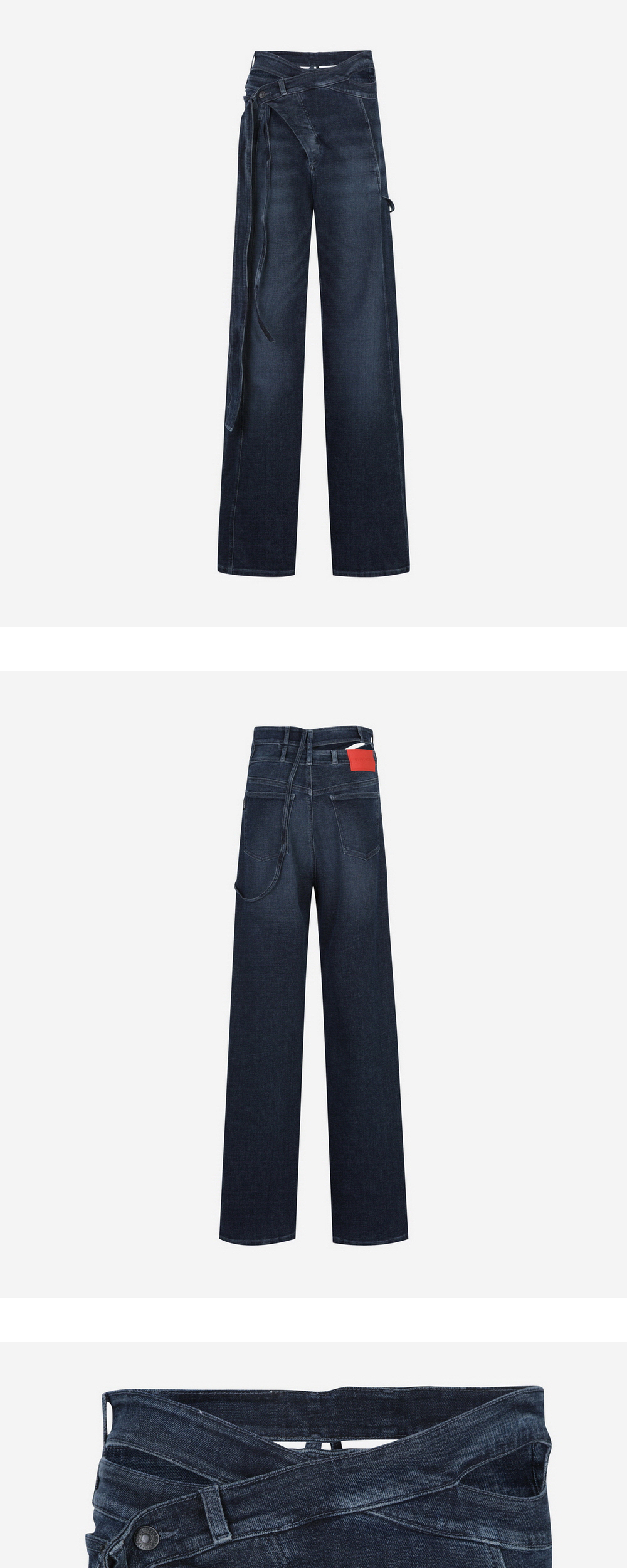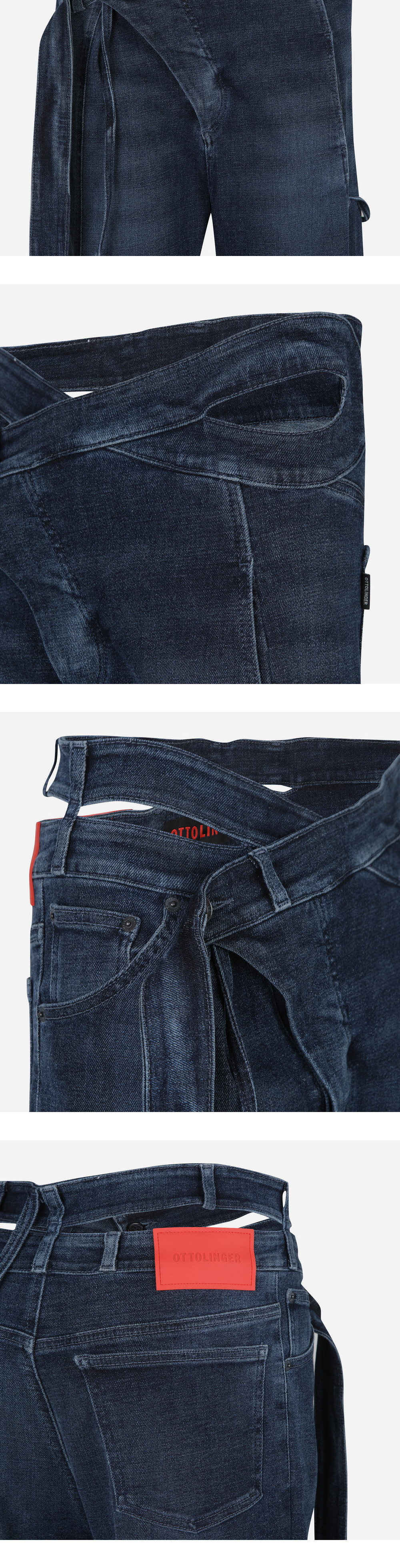 Woven Denim Drape Pants In Blue Signature style. Twisted body. Cutout at hip. Exaggerated belt. Button-closure. Black rubber logo patch. Wide cut. Extra-long leg. Handwash cold. 35% Recycled Polyester 25% Cotton 19% PRE 19% POS 2% Elastane Designed in Berlin. Made in Türkiye.