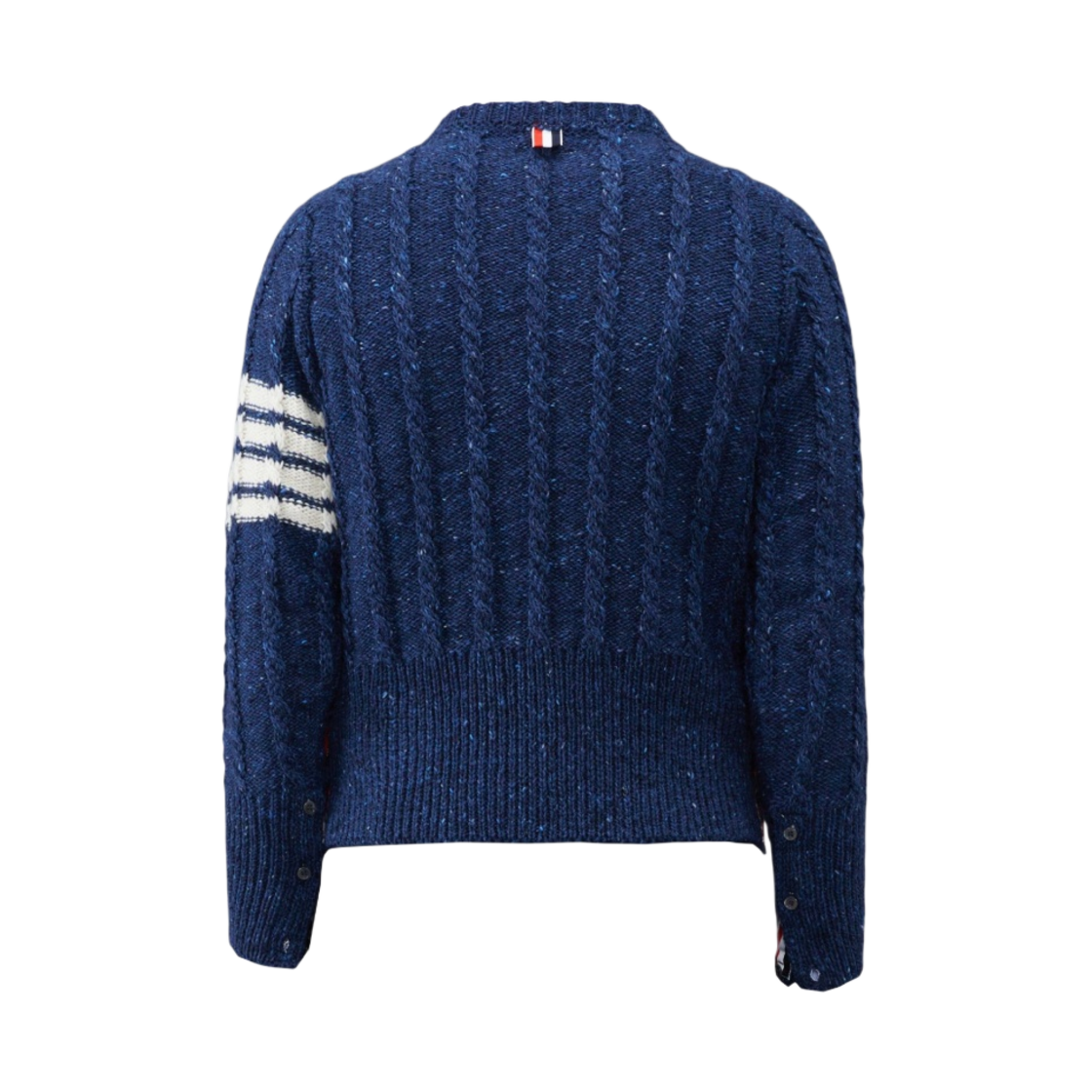 Thom Browne Donegal Twist Cable 4-Bar Classic Crewneck Pullover Blue
