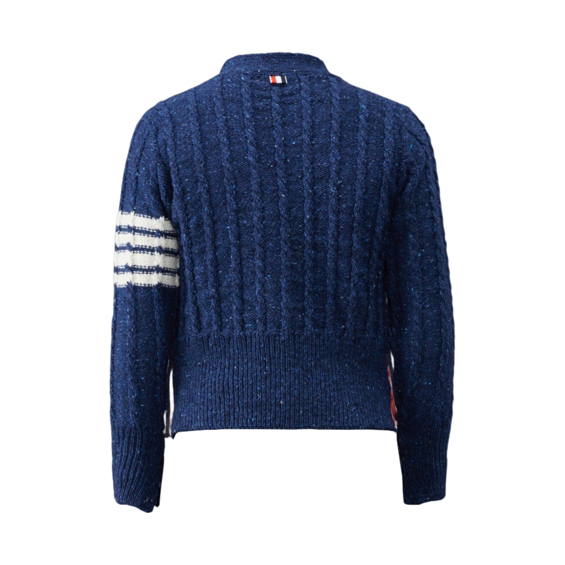 Thom Browne Donegal Twist Cable 4-Bar Classic V-Neck Cardigan Blue
