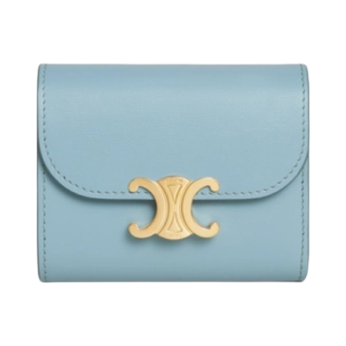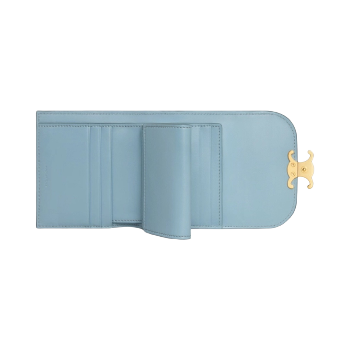 Celine Triomphe Small Flap Wallet in Shiny Calfskin California Blue