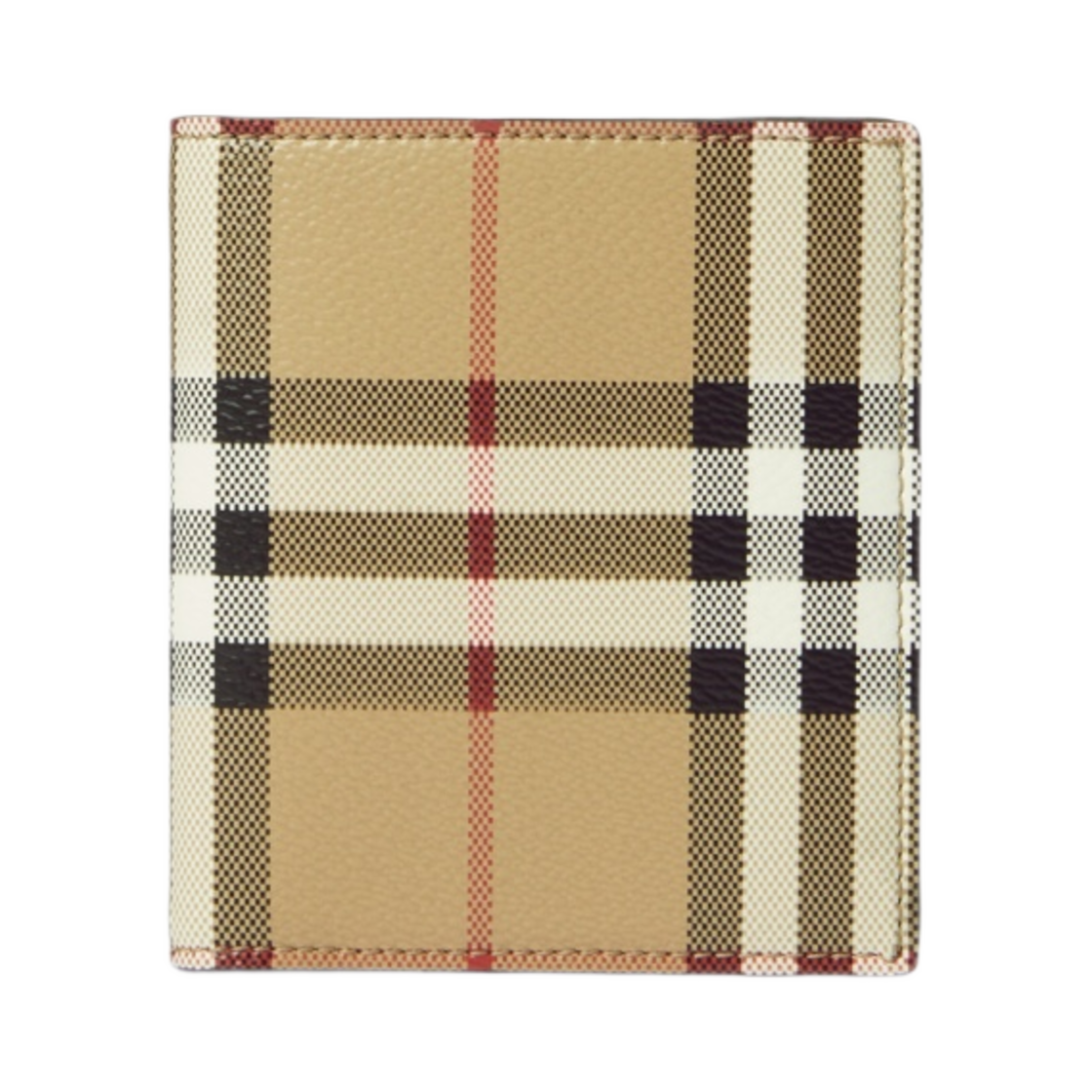 버버리 체크 앤 레더 폴딩 카드 케이스 아카이브 베이지
