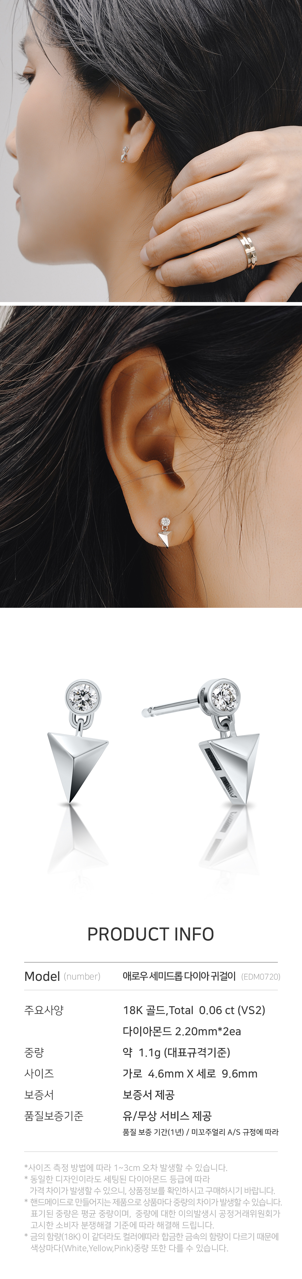 미꼬 애로우 세미 드롭 1 다이아몬드 이어링 화이트 골드