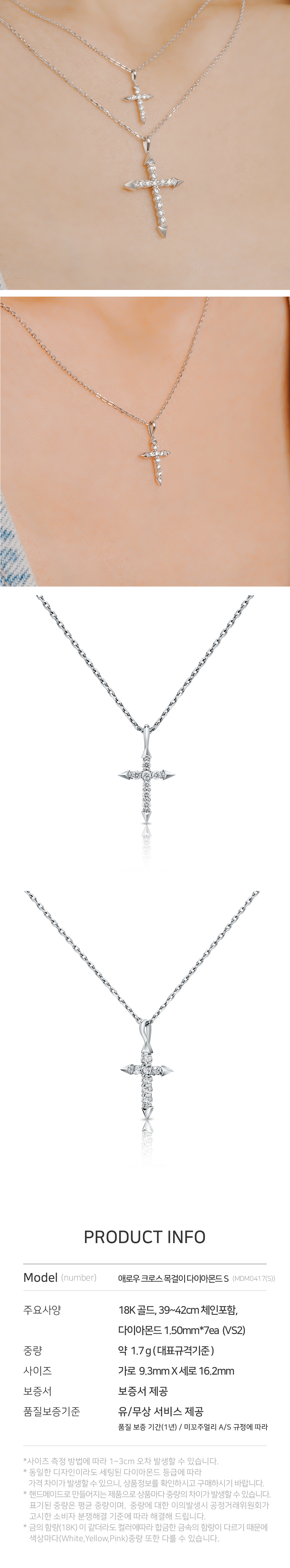 미꼬 애로우 크로스 다이아몬드 S 네클리스 화이트 골드