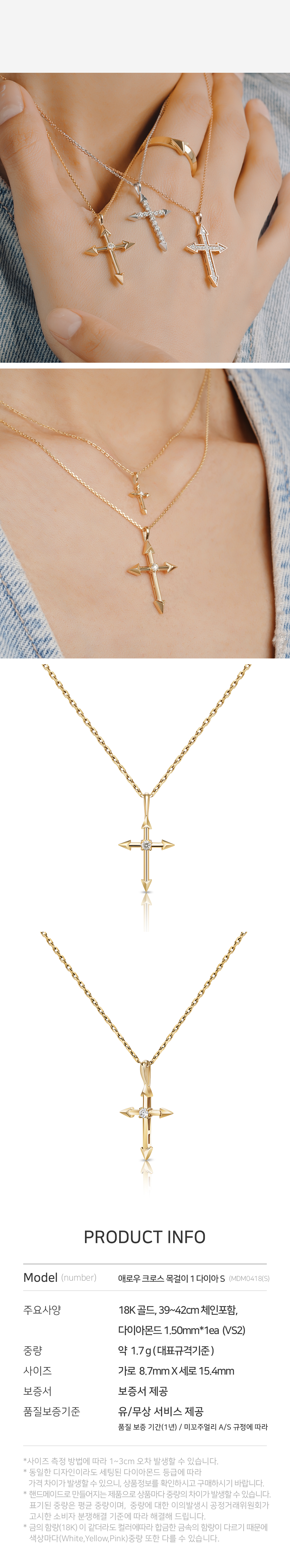 미꼬 애로우 크로스 1 다이아몬드 S 네클리스 옐로우 골드