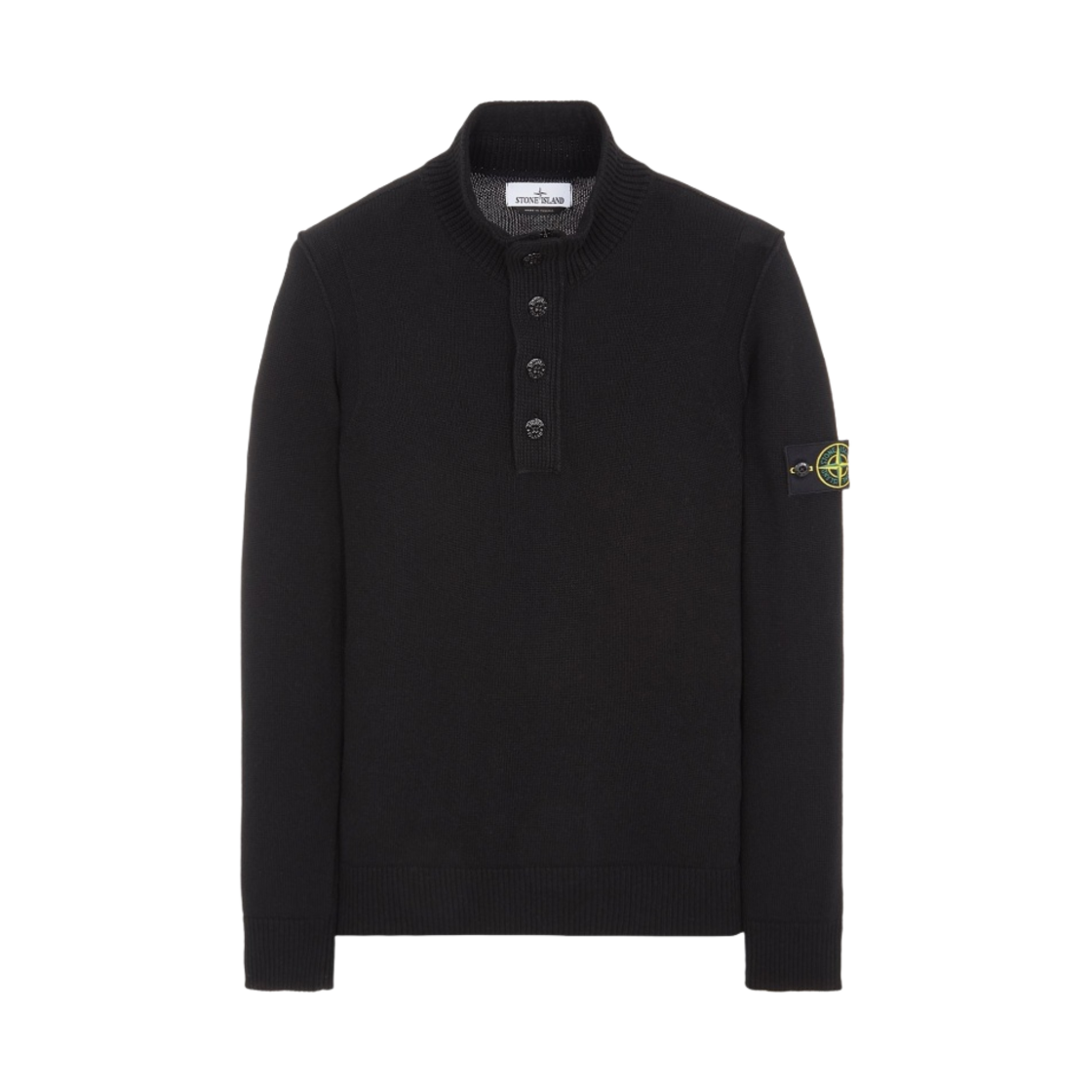 Stone Island 540A3 High Neck Half Button Lambswool Knit Black - 23FW