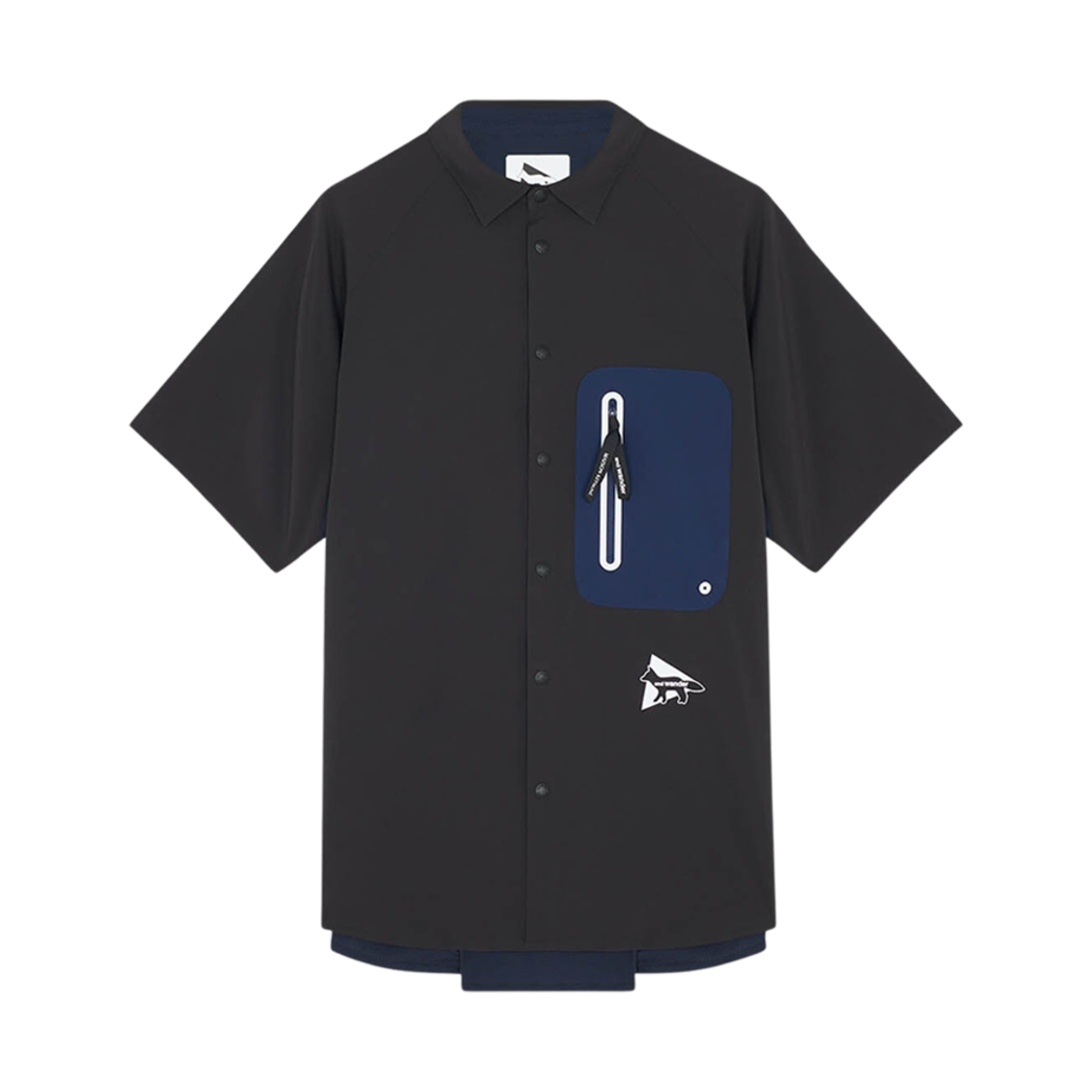 Maison Kitsune x And Wander Hiking Shirt Grey Blue Color Block