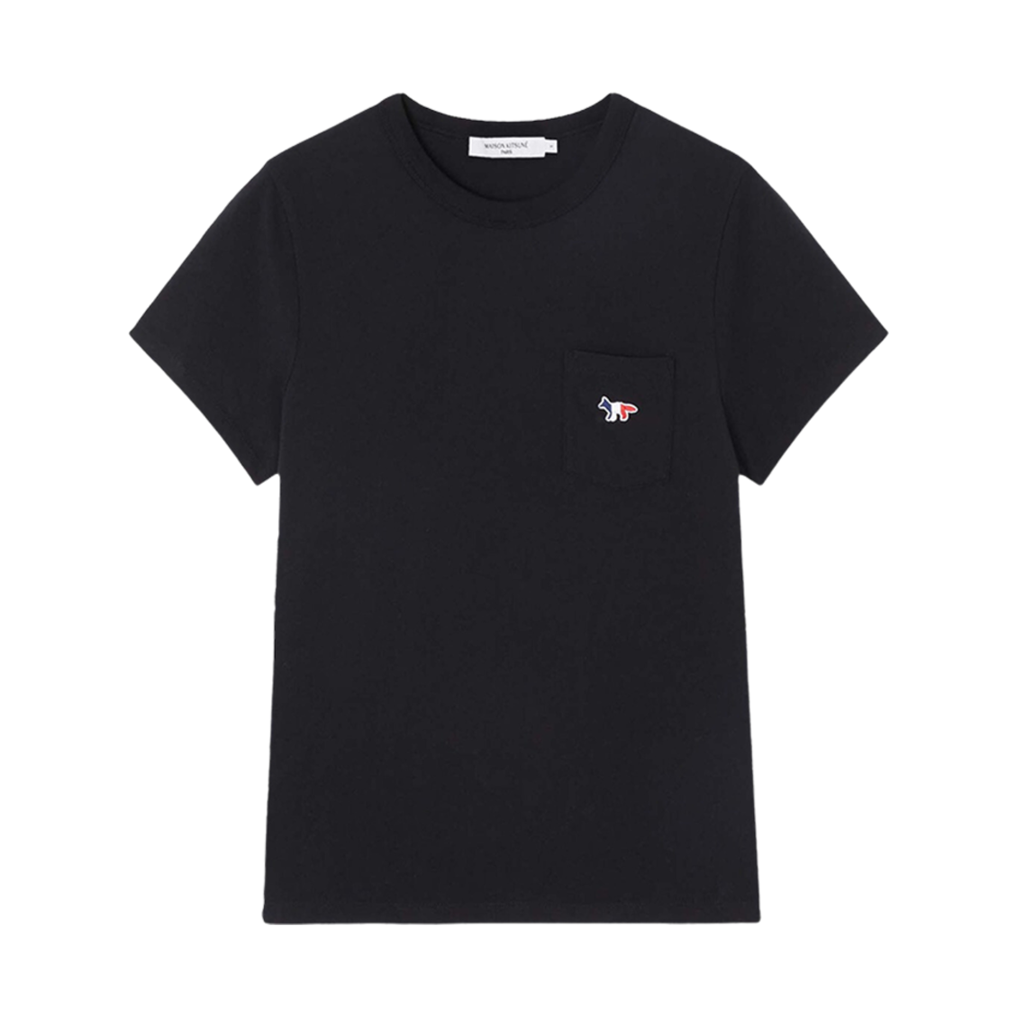 (W) Maison Kitsune Tricolor Fox Patch Classic Pocket T-Shirt Black
