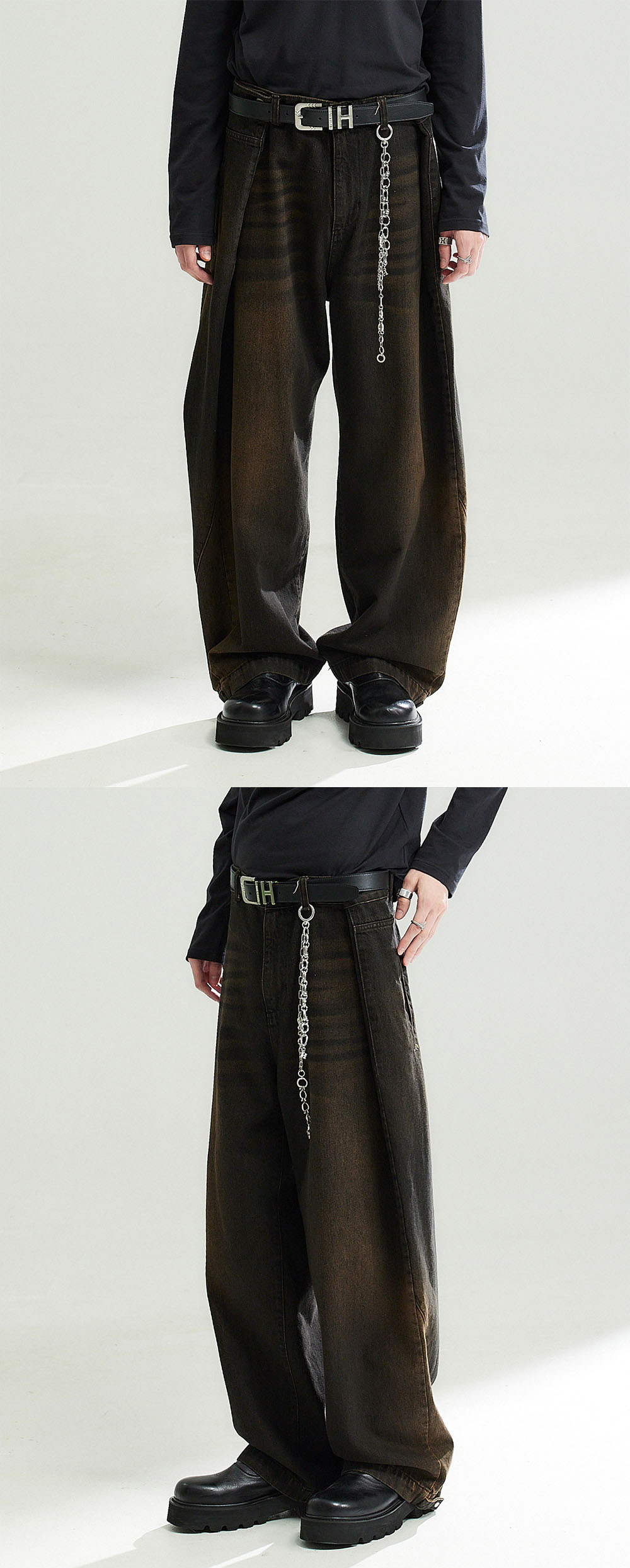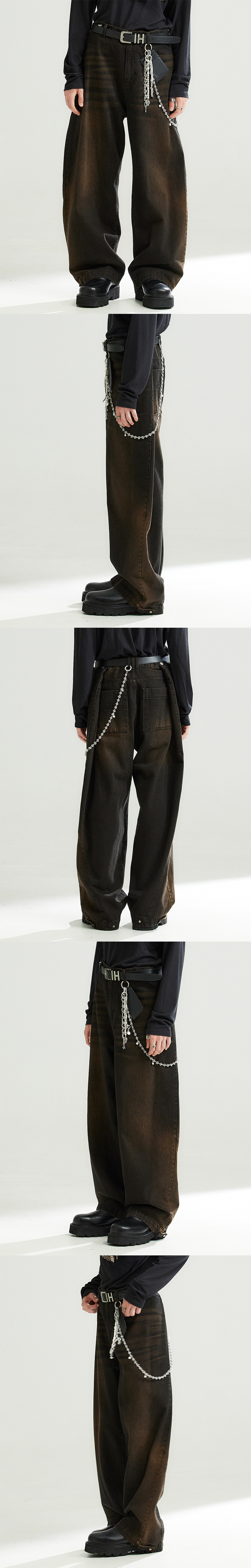 알렌느 사이드 샌드 블러쉬드 투웨이 폴딩 진 다크 브라운 오일