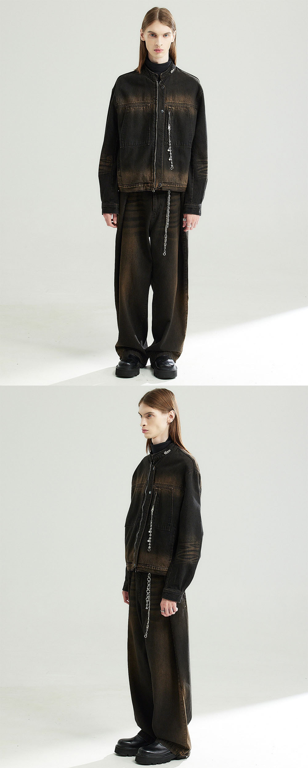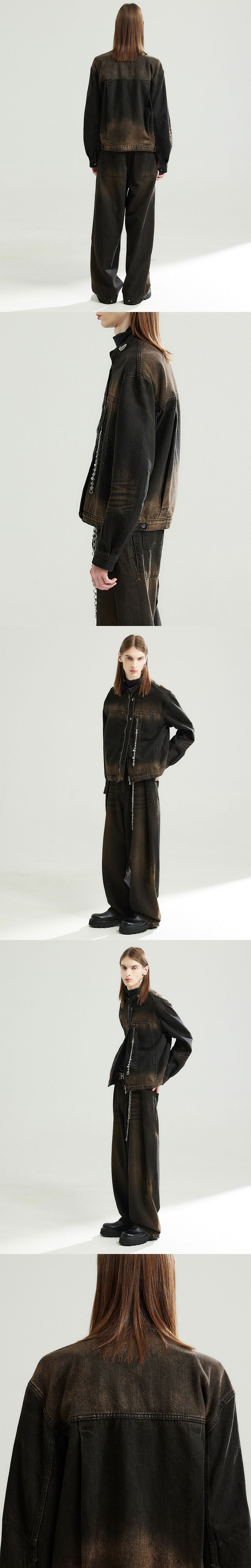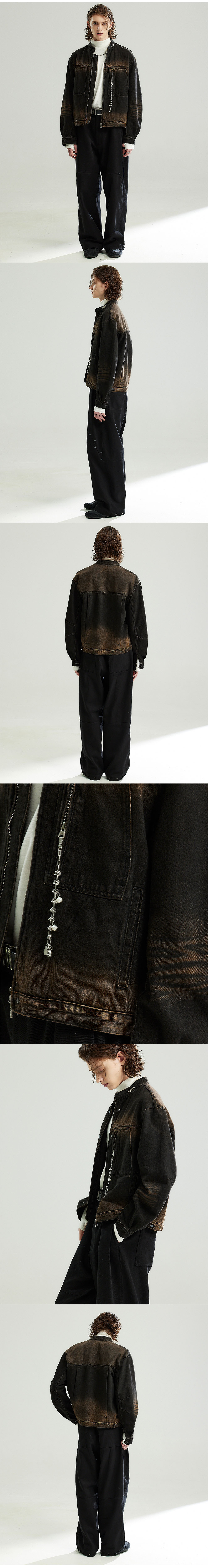 알렌느 샌드 블러쉬드 데님 바이커 자켓 다크 브라운 오일