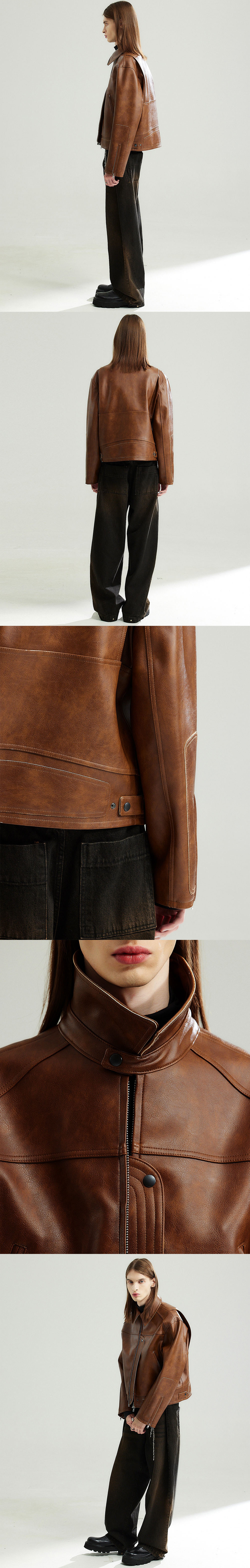 태닝 워싱 가공된 두껍고 빈티지한 느낌의 인조 가죽으로 제작된 레이싱 자켓입니다. 은은한 광이나는 소재로 고급스러운 느낌을 주며 입체적인 패치워크의 레이싱 디테일을 차용하여 유니크하고 트랜디하게 입기 좋은 제품입니다. -DETAIL- 레이싱 패치워크 차용 디테일 입체 절개 등판 액션 플라켓 디테일 스냅을 활용하여 플라켓을 앞으로 뺴서 연출 가능 디테일 -COMPOSITION- 폴리우레탄 100% YKK 2way 지퍼(일본 수입)/YKK 스냅(일본 수입) 안감-폴리에스테르 100% 세탁-드라이 클리닝 -model- midhair model 181/61 2사이즈 착용 midlonghair model 187/67 2사이즈 착용 longhair model 184/64 2사이즈 착용