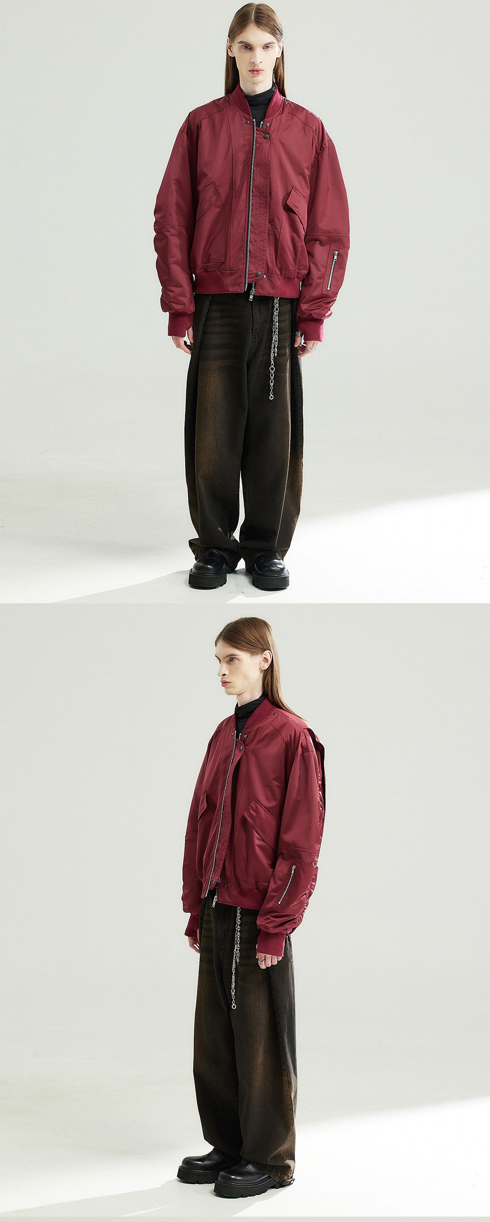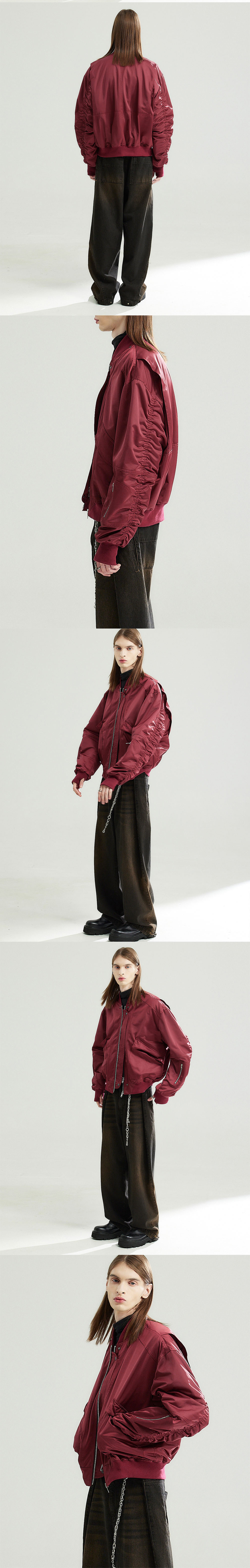 Haleine Satin 3D Detachable Finger Hole Hooded Bomber Burgundy