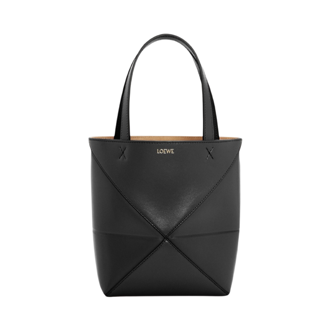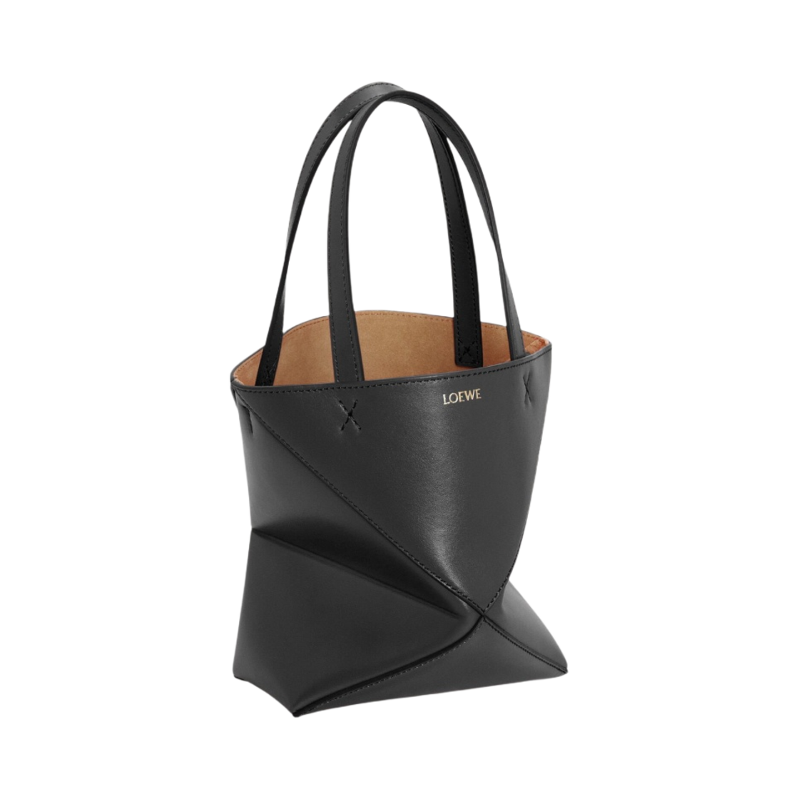 Loewe Mini Puzzle Fold Tote Bag in Shiny Calfskin Black