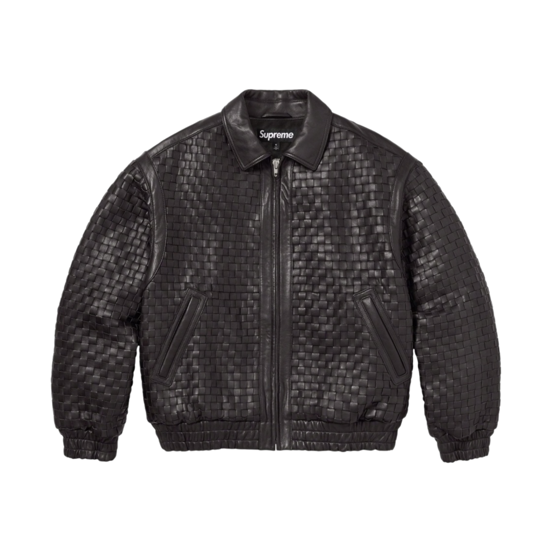슈프림 우븐 레더 바시티 자켓 블랙 - 23FW