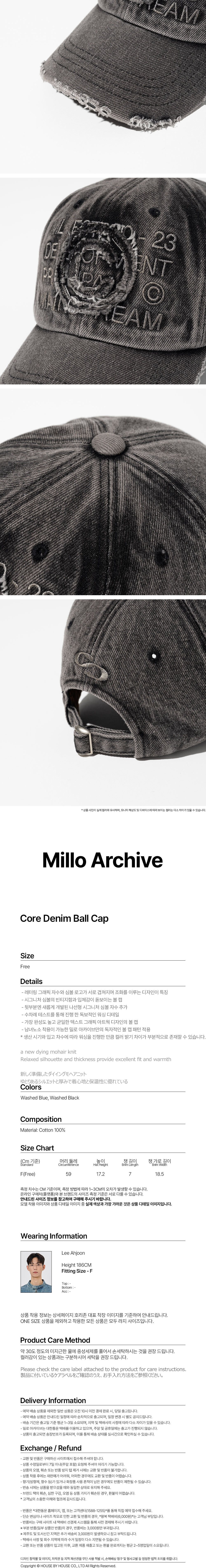 밀로 아카이브 코어 데님 볼캡 워시드 블랙