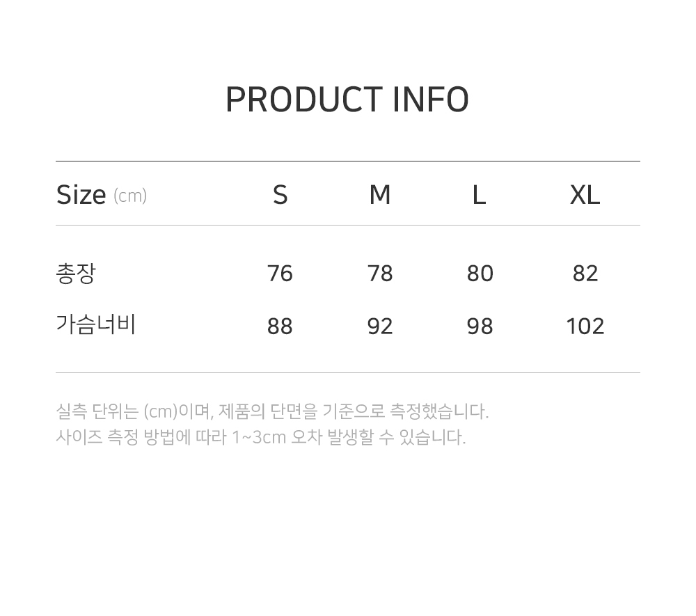 측정 방법에 따라 사이즈에 일부 오차가 있을 수 있습니다.