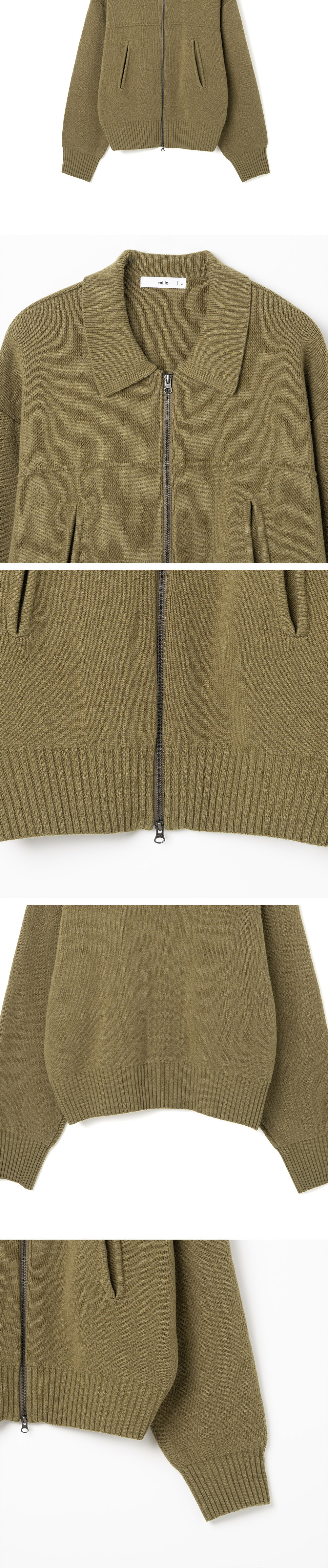 밀로 아카이브 자카드 니트 블루종 카키